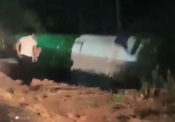 Com o impacto, o veículo saiu da pista e capotou em um barranco às margens da rodovia. Imagens que circulam nas redes sociais mostram o momento em que passageiros deixam o micro-ônibus após o tombamento.