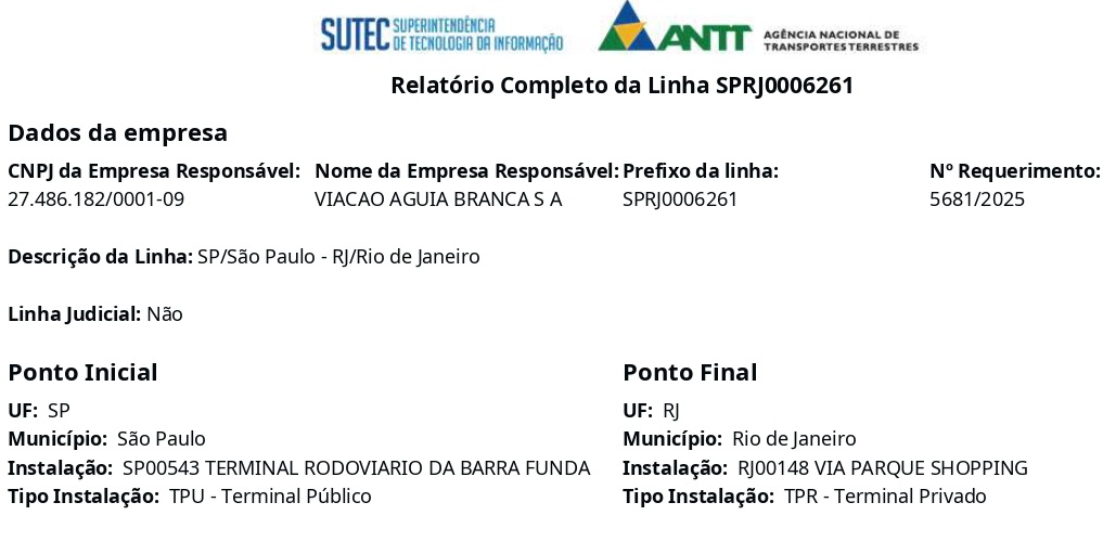 No caso da linha São Paulo x Rio de Janeiro, para atender nova seção intermediária, isto é, parar em uma nova cidade no trajeto, exige um novo TAR”, diz nota da Águia Branca ao Diário do Transporte.