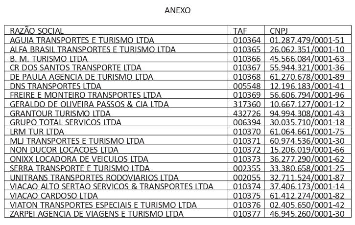 Veja a seguir a relação das empresas atendidas, conforme o anexo publicado: