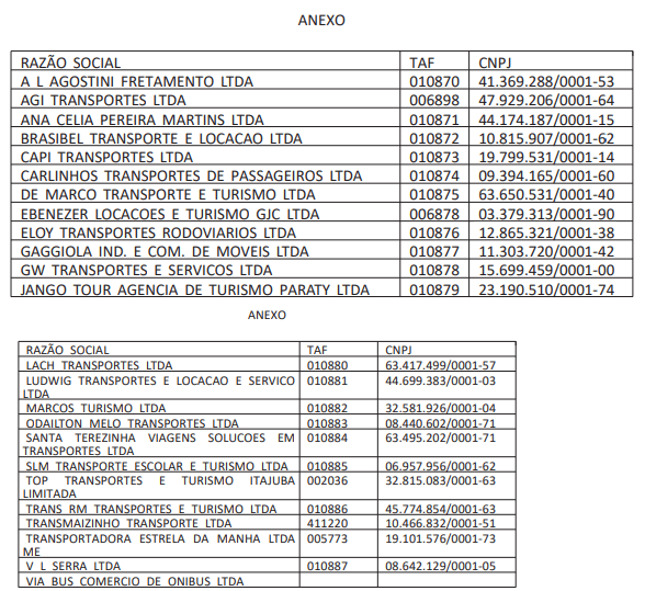 A seguir, a lista completa das empresas, com razão social, número do TAF e CNPJ, conforme os anexos oficiais das decisões.