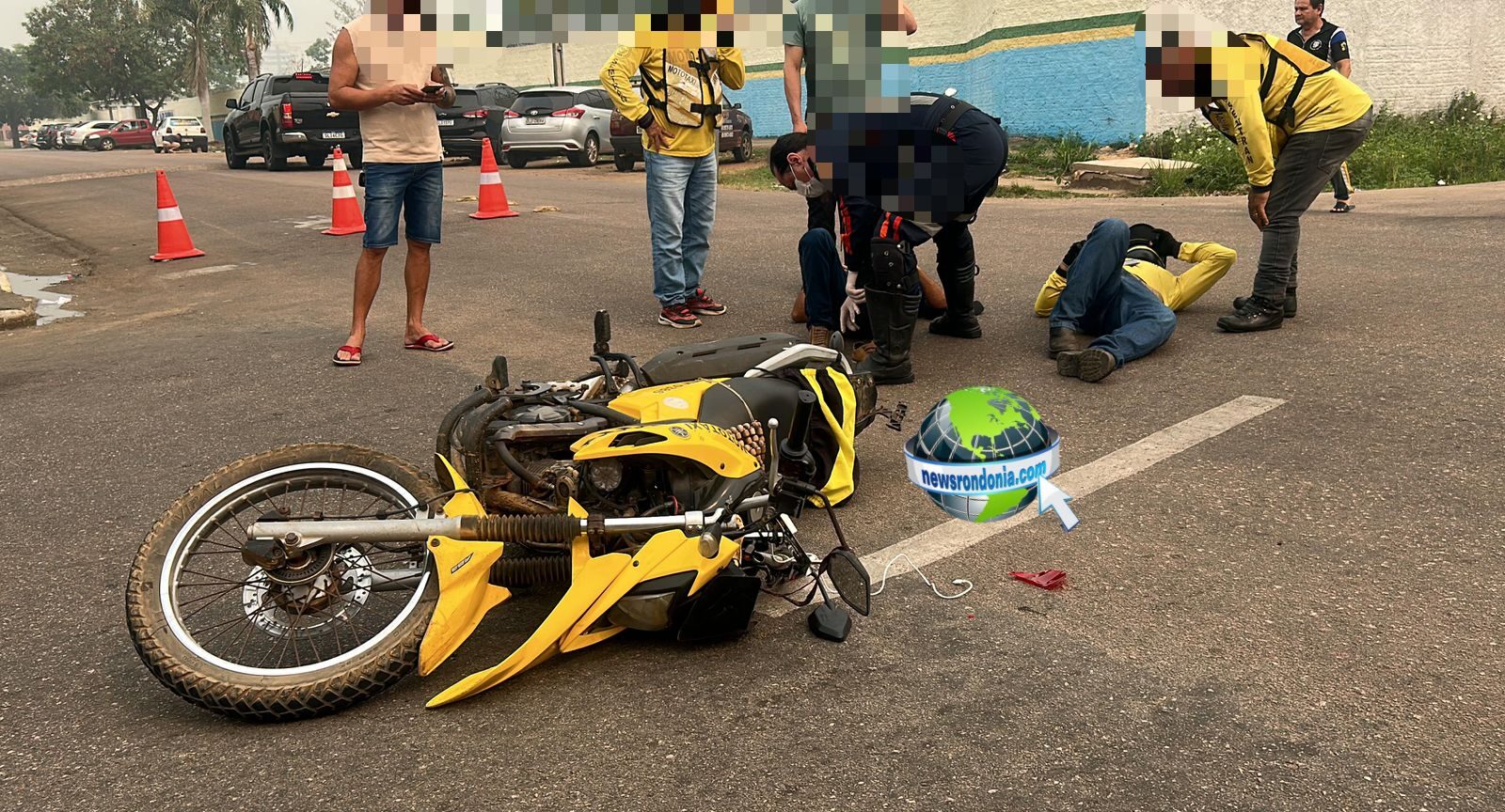 Mototaxista e passageira ficaram feridos em acidente no centro de Porto Velho (RO); Foto: News Rondonia