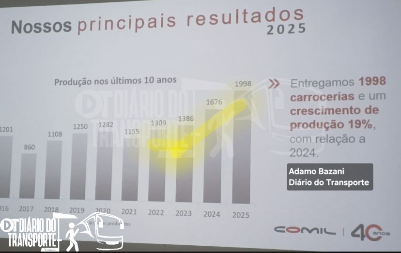 No ano que completou 40 anos, em 2025, a fabricante de carrocerias de ônibus de Erechim (RS), Comil, registrou alta de 19% no volume de produção em relação 2024, com 1998 unidades produzidas ante 1676.