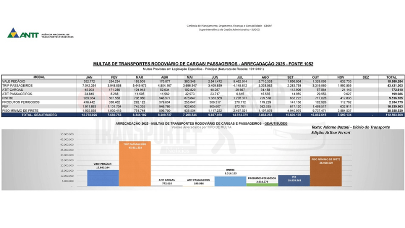 Já no segmento de multas e taxas relacionadas ao transporte de passageiros, chama atenção o avanço do chamado Novo Marco Regulatório do TRIIP — Transporte Rodoviário Interestadual e Internacional de Passageiros —, que estabeleceu regras mais claras e estruturadas para a operação das linhas regulares de ônibus.