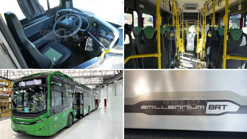 Trata-se do novo e-Millenium BRT, com carroceria da Caio, seguindo padrões europeus de design e conforto e chassis, baterias e motores elétricos da BYD.