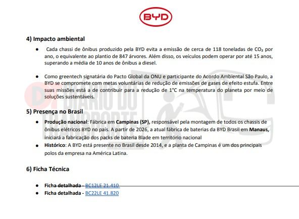 Em 11 de agosto de 2025, o Diário do Transporte esteve na fábrica da BYD em Campinas, no interior de São Paulo para conhecer a tecnologia.
