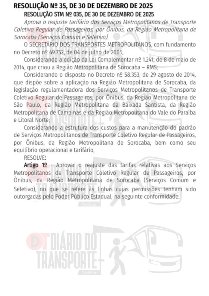 As tarifas integradas dos ônibus metropolitanos de São Paulo também sofrem reajustes a partir de 06 de janeiro de 2026.