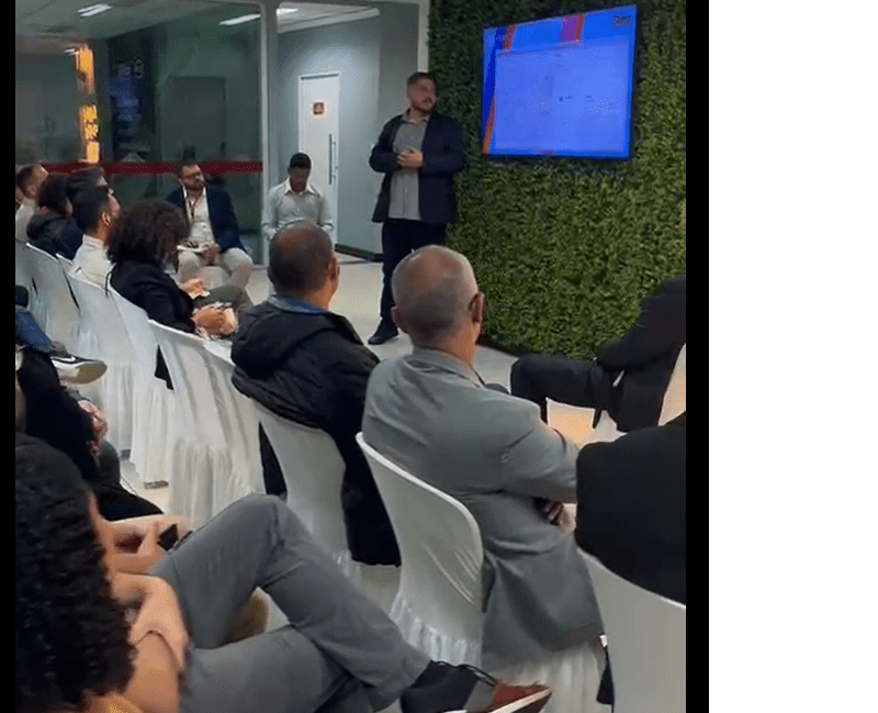Durante a visita, os participantes conheceram em detalhes a infraestrutura de recarga da Auto Bless, desenvolvida internamente pelos engenheiros César e Bernardino. César explicou que o projeto, iniciado no início de 2024, foi elaborado e executado em 45 dias.