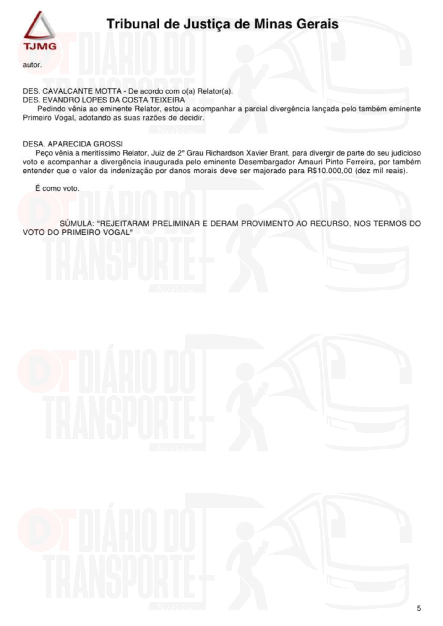 A turma julgadora manteve a condenação da empresa e divergiu sobre o valor da indenização. A quantia foi fixada em R$ 10 mil para cada um dos dois passageiros, conforme os votos dos desembargadores Amauri Pinto Ferreira, Aparecida Grossi e Evandro Lopes da Costa Teixeira.