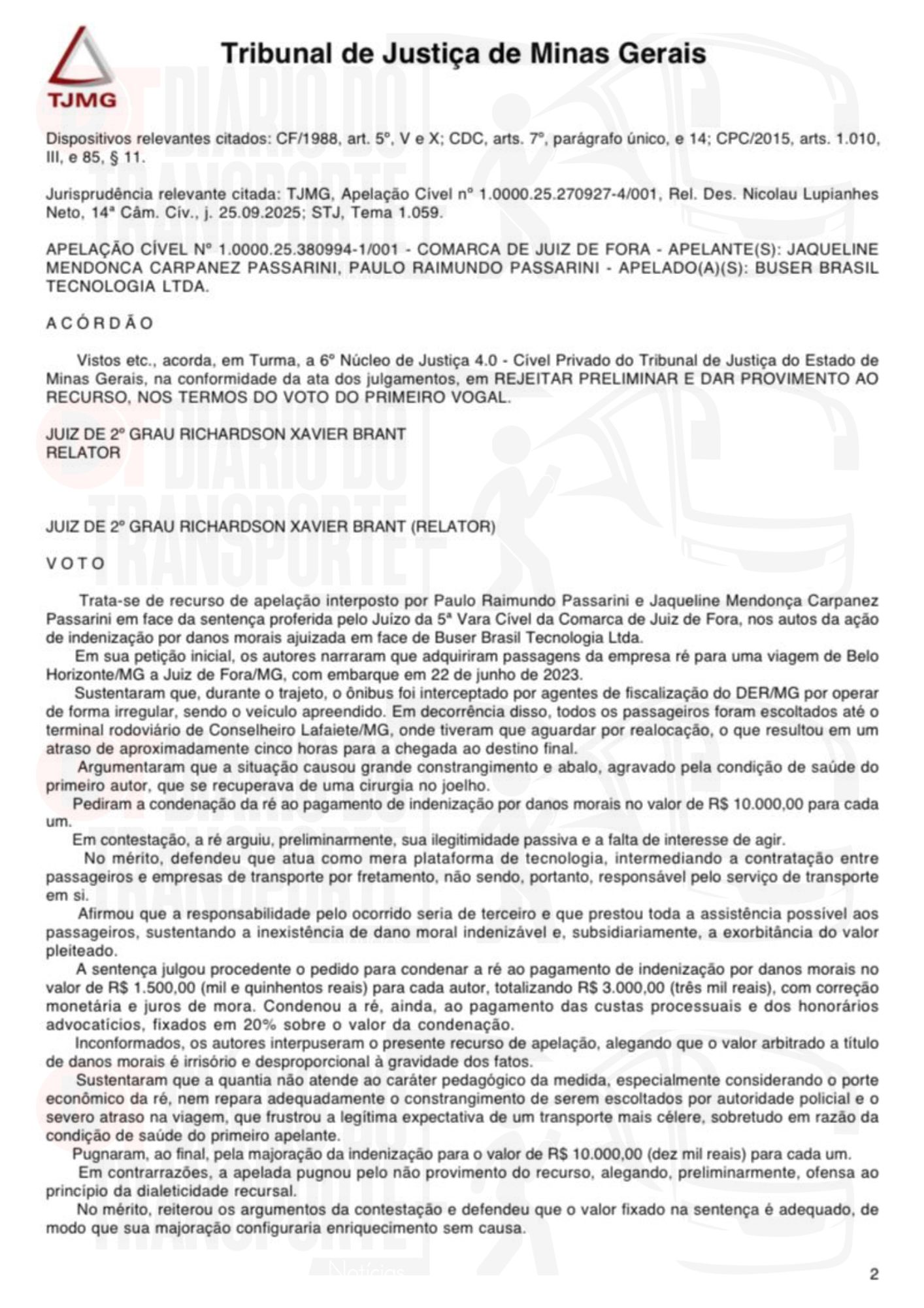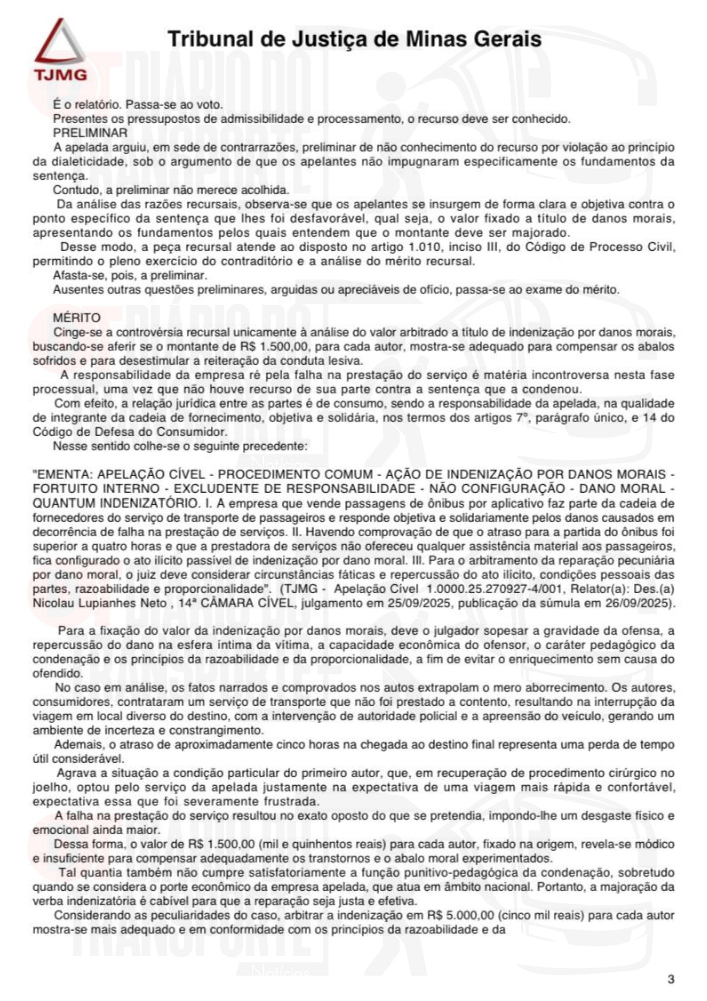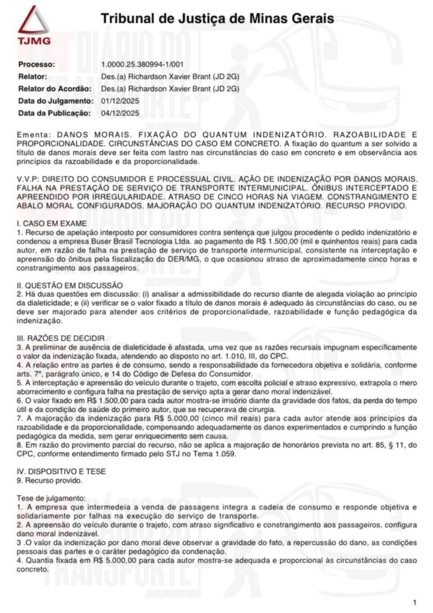 “Os consumidores contrataram um serviço de transporte que não foi prestado a contento, resultando na interrupção da viagem em local diverso do destino, com a intervenção de autoridade policial e a apreensão do veículo, gerando um ambiente de incerteza e constrangimento.” – diz trecho da sentença.