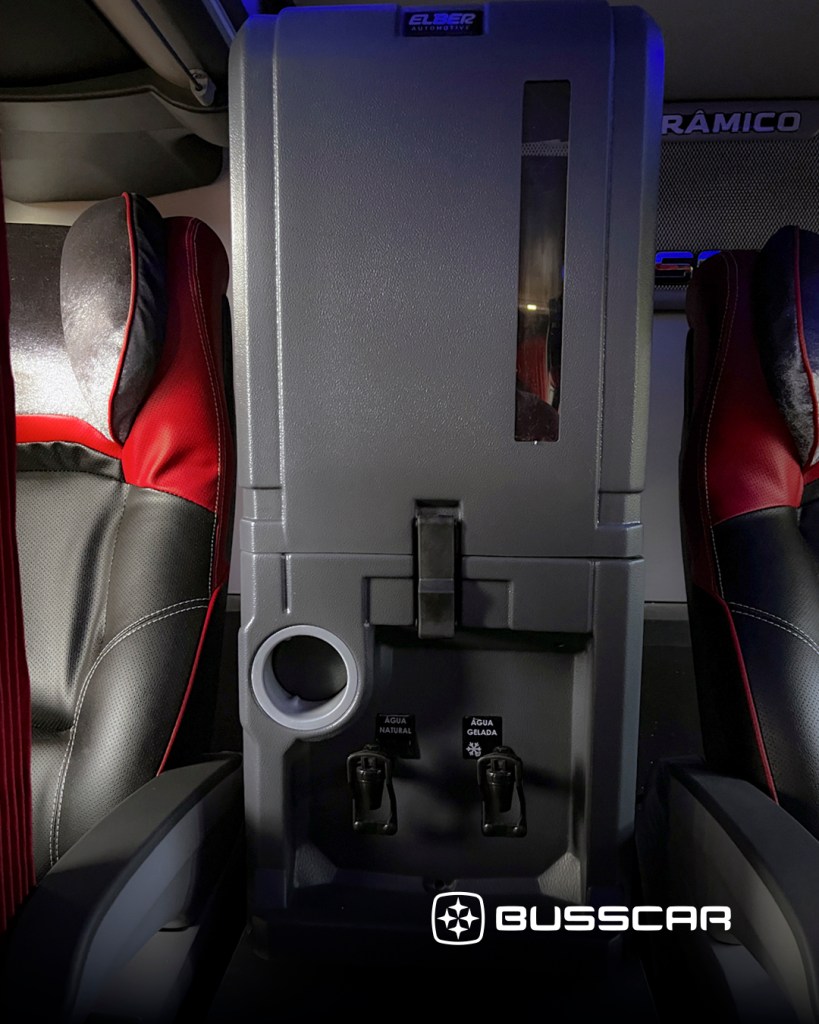 O veículo conta com móveis e bares nos dois salões, armários com espaço para primeiros socorros, sistemas de refrigeração, bebedouros elétricos de 20 litros com porta-copos e conservadora de 50 litros, além de lixeira embutida, suporte para documentos na cabine e ventilador na cama do segundo motorista.
