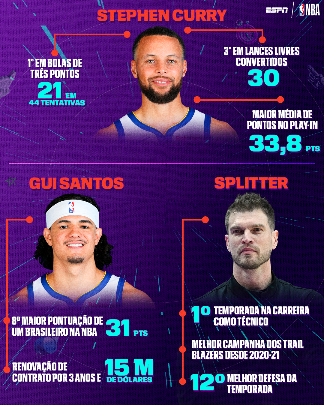 Esta será a segunda participação de Gui no play-in. Ele jogou por seis minutos na temporada passada, na vitória dos Warriors sobre os Grizzlies, anotando 3 pontos e 3 rebotes.