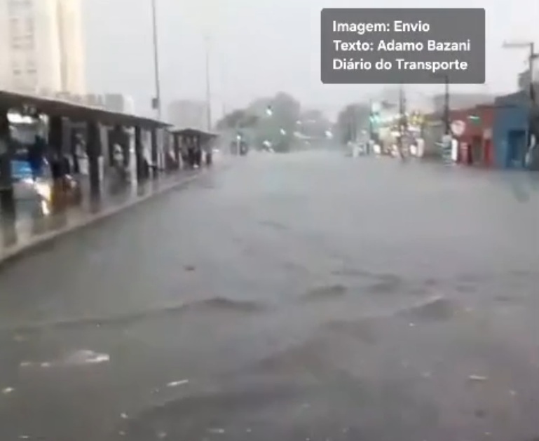 O Diário o Transporte recebeu imagens feitas de um ônibus que mostravam alagamento em vias como a Vitor Manzini, na região de Capão Redondo/Grajaú, na zona Sul.