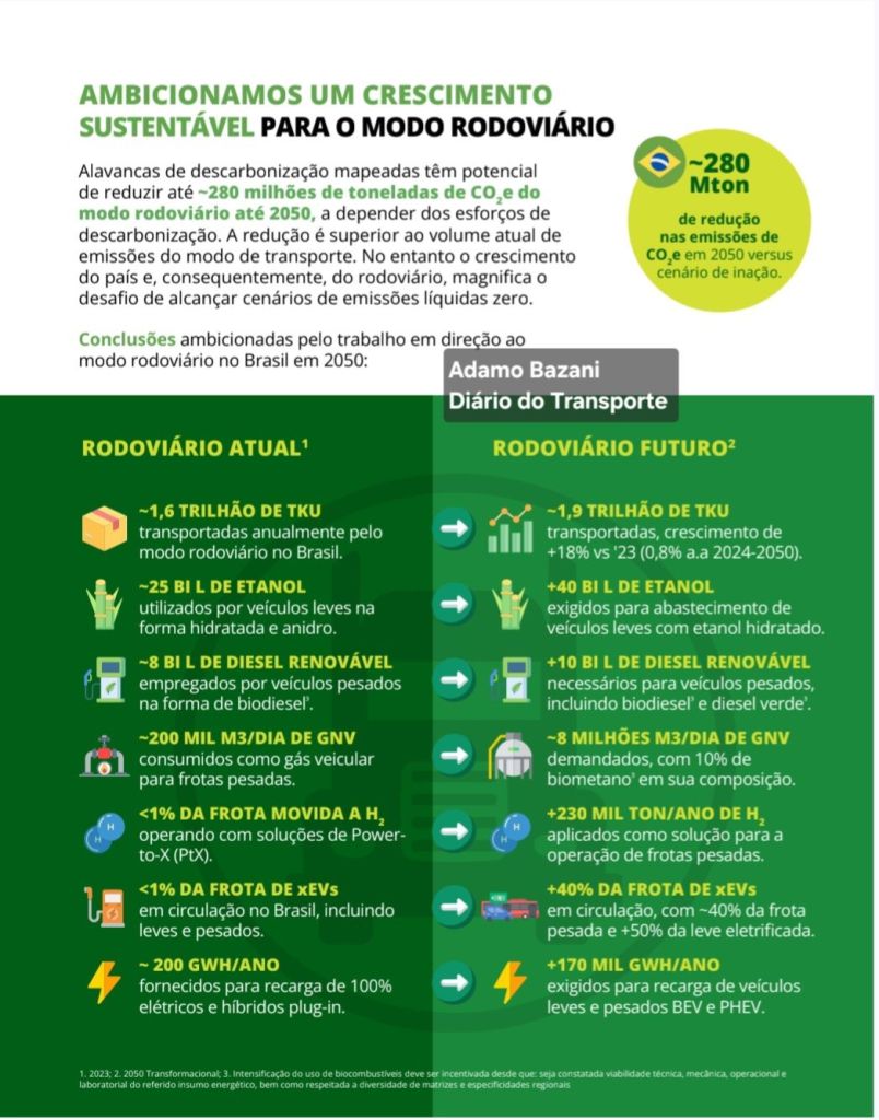 Juntamente com outras alternativas aos derivados de petróleo, como a ampliação do uso do etanol em mais de 40 bilhões de litros e de diesel verde em mais de 10 bilhões,  além 8 milhões de m3 de GNV (Gás Natural Veicular) com 10% de biometano na mistura (combustível obtido na decomposição de resíduos), esta meta de frota poderia fazer com que até 2050, os meios de transportes rodoviários possam ter uma redução de 280 mega toneladas de CO2 em comparação um quadro que projete que daqui para lá nada ou muito pouco seria feito para mudar a realidade atual das emissões.