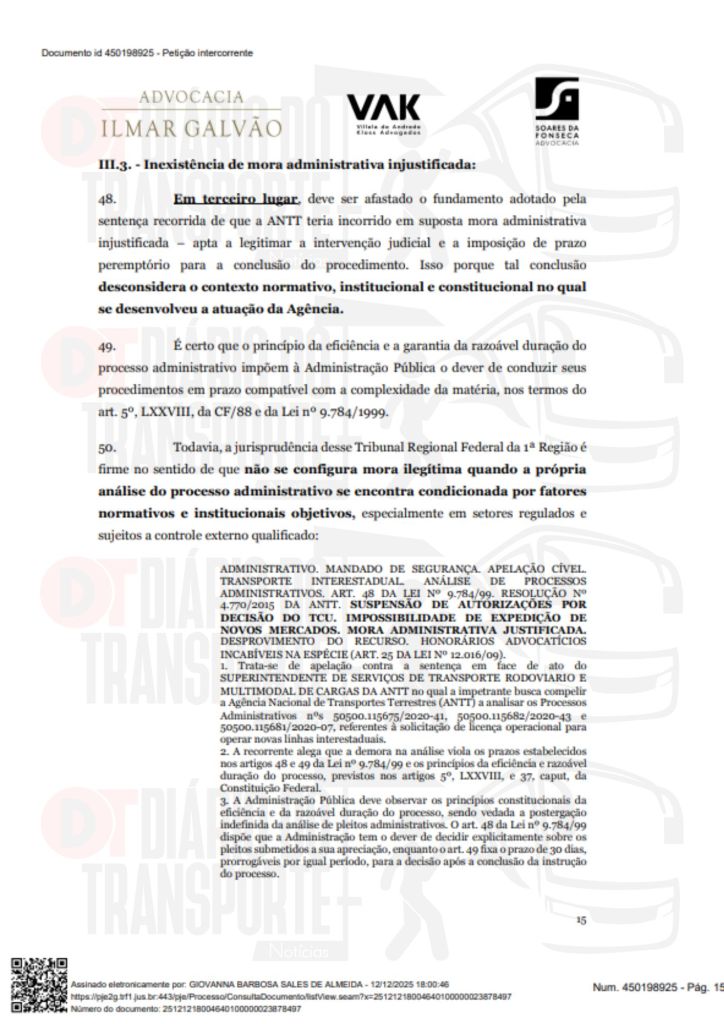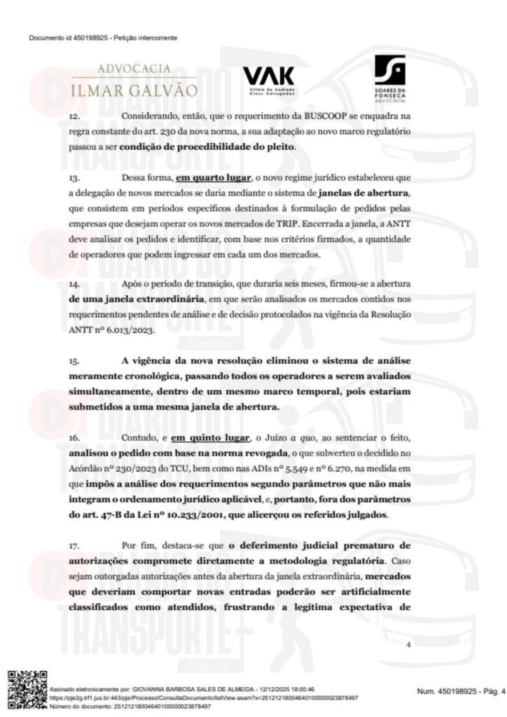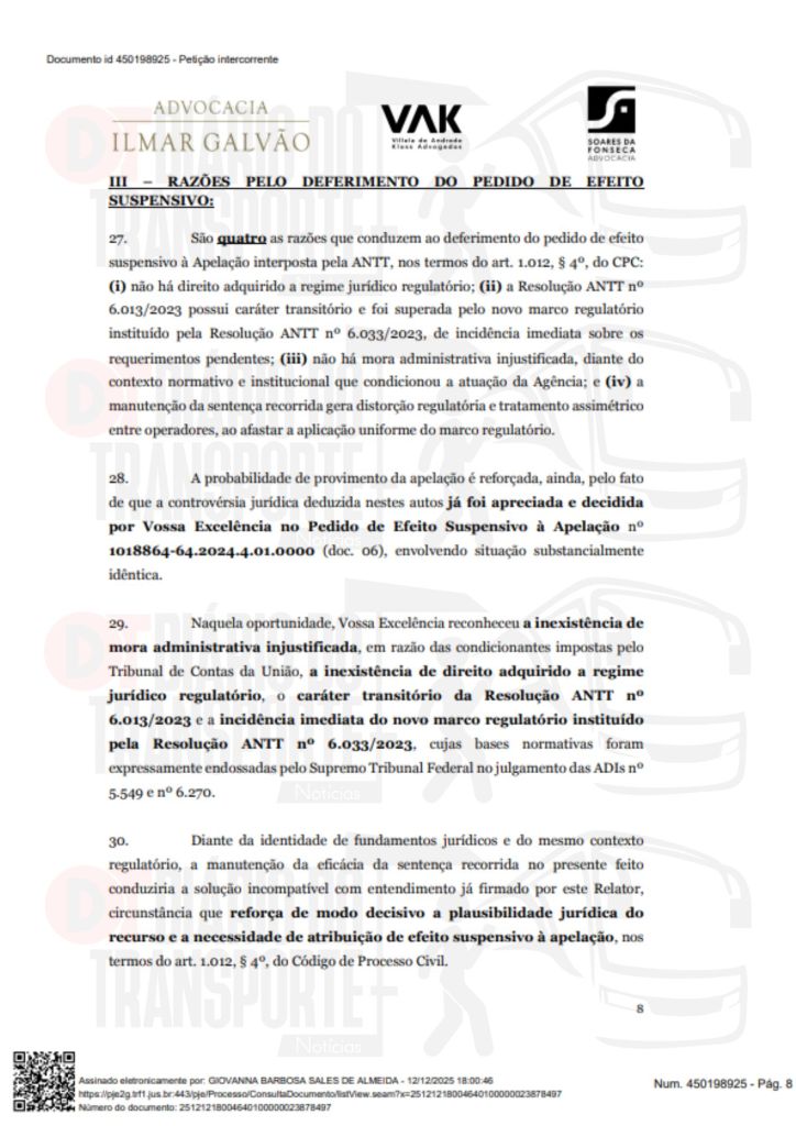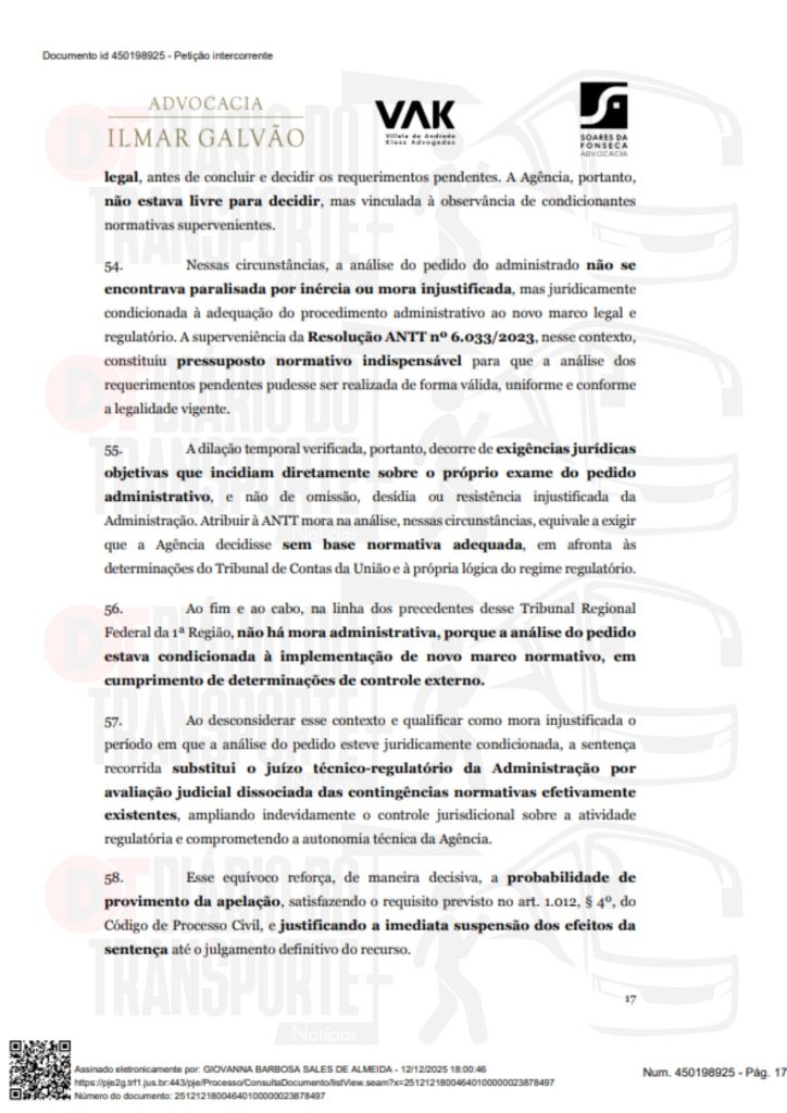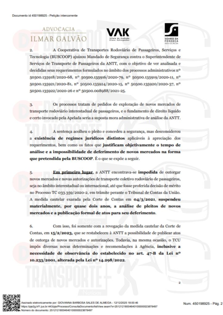 As contestações foram apresentadas no âmbito de pedido de efeito suspensivo à apelação em tramitação no Tribunal Regional Federal da 1ª Região (TRF-1) e atingem diretamente decisões da SUPAS publicadas no Diário Oficial da União em novembro deste ano, que autorizaram a Penha a iniciar a operação de diversas linhas interestaduais enquanto o mérito judicial ainda está em discussão.