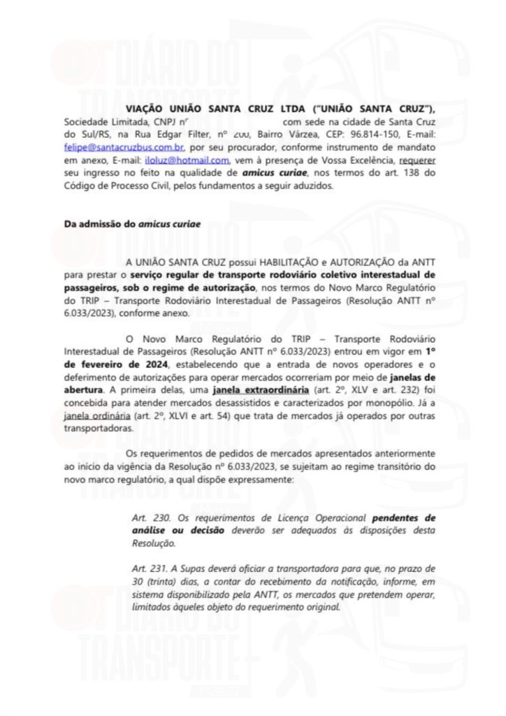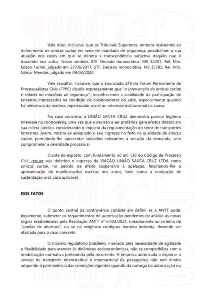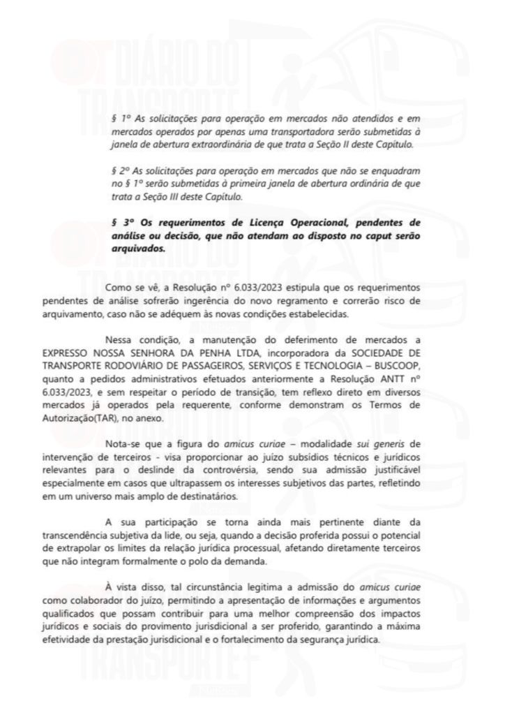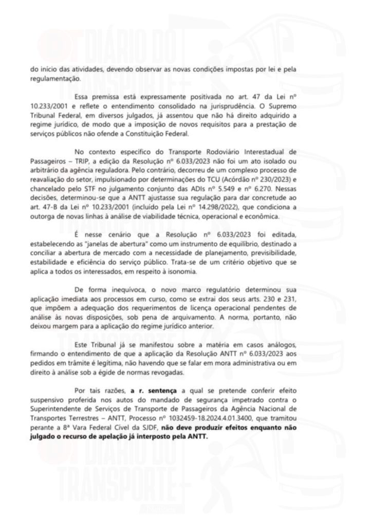 As empresas também argumentam que o cumprimento automático de decisões judiciais, sem a devida adequação às normas atualmente em vigor, compromete a coerência do modelo regulatório e a segurança jurídica do setor de transporte interestadual de passageiros.