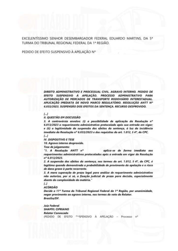 As contestações foram apresentadas no âmbito de pedido de efeito suspensivo à apelação em tramitação no Tribunal Regional Federal da 1ª Região (TRF-1) e atingem diretamente decisões da SUPAS publicadas no Diário Oficial da União em novembro deste ano, que autorizaram a Penha a iniciar a operação de diversas linhas interestaduais enquanto o mérito judicial ainda está em discussão.
