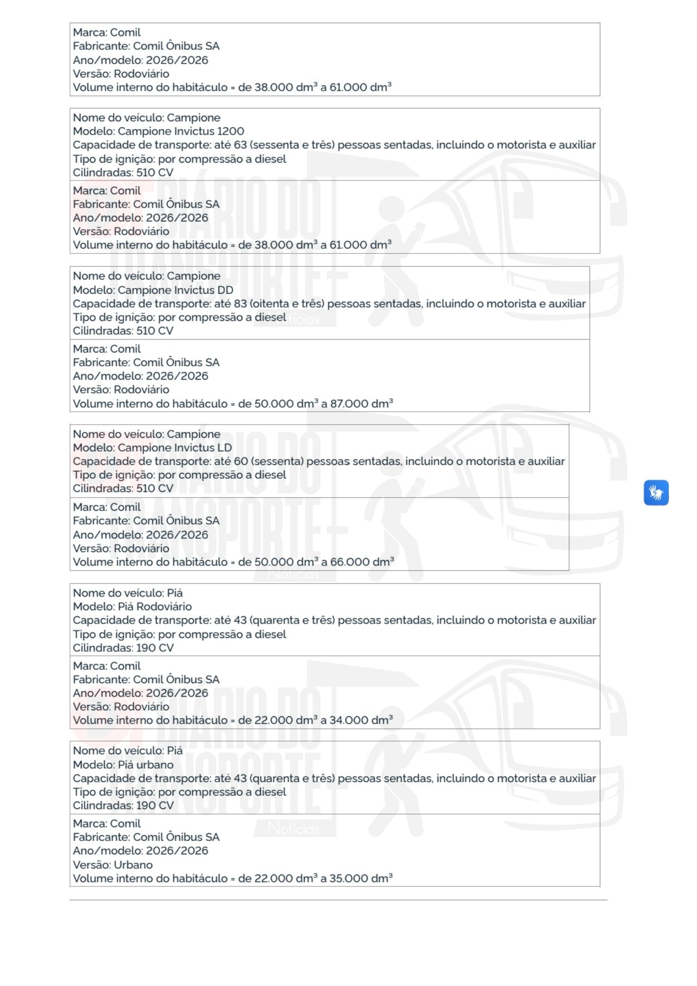 Como mostrou o Diário do Transporte, no início de março, já haviam sido incluídas outras linhas da Comil e da Marcopolo, de Caxias do Sul (RS).