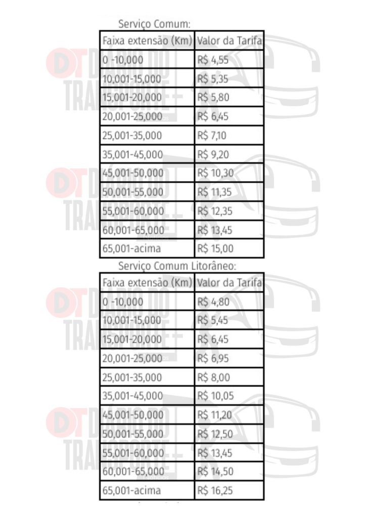 As tarifas de ônibus intermunicipais metropolitanos ficam, a partir de 06 de janeiro de 2026, no Vale do Paraíba e Litoral Norte da seguinte forma: