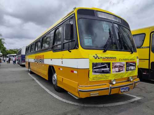 Uma raridade restaurada por um motorista colecionador: a Itapemirim, em versão preservada, trouxe um ônibus Ciferal Líder sobre chassi Mercedes-Benz O-326 PL. Este modelo era bastante difundido em linhas rodoviárias entre cidades, e sua preservação individual mostra a dedicação de entusiastas na manutenção da herança do transporte coletivo.