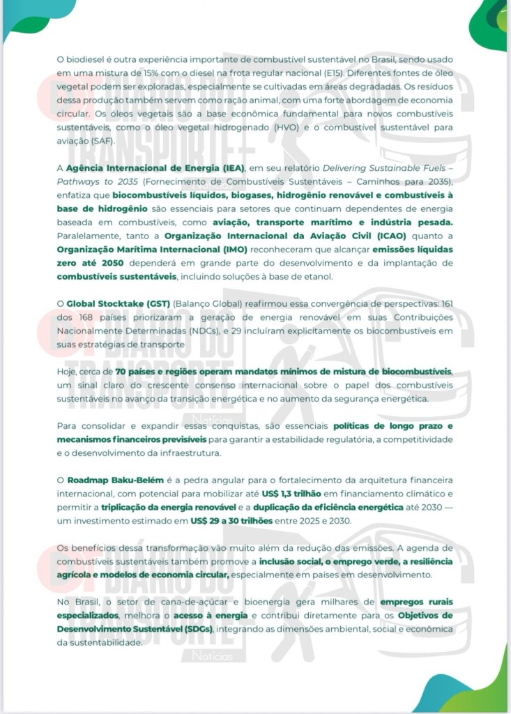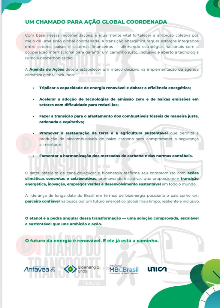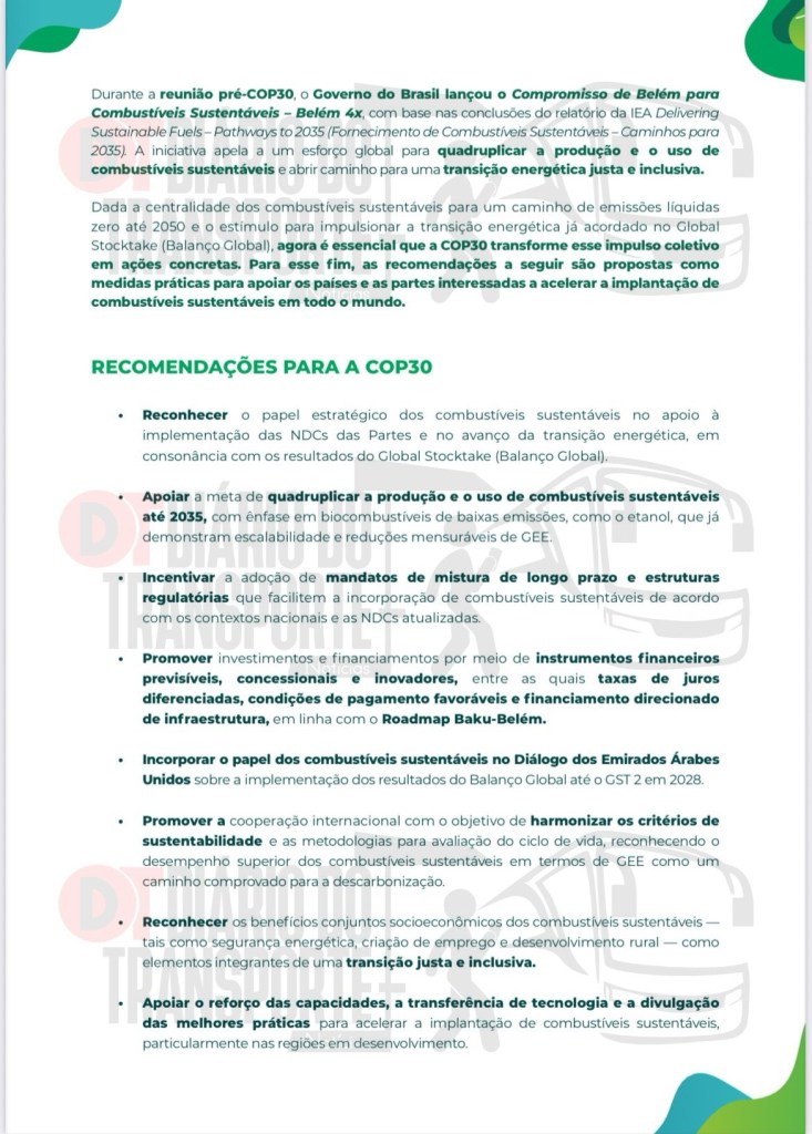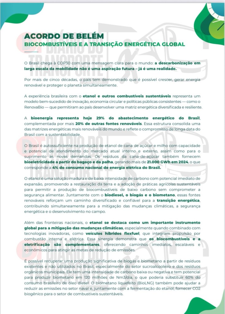 HomeTransportesCOP30 – Setor de biocombustíveis lança “Carta de Belém”, apresenta meta de...
