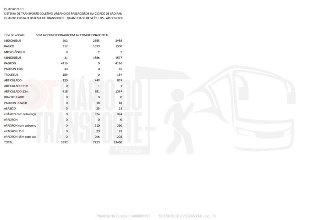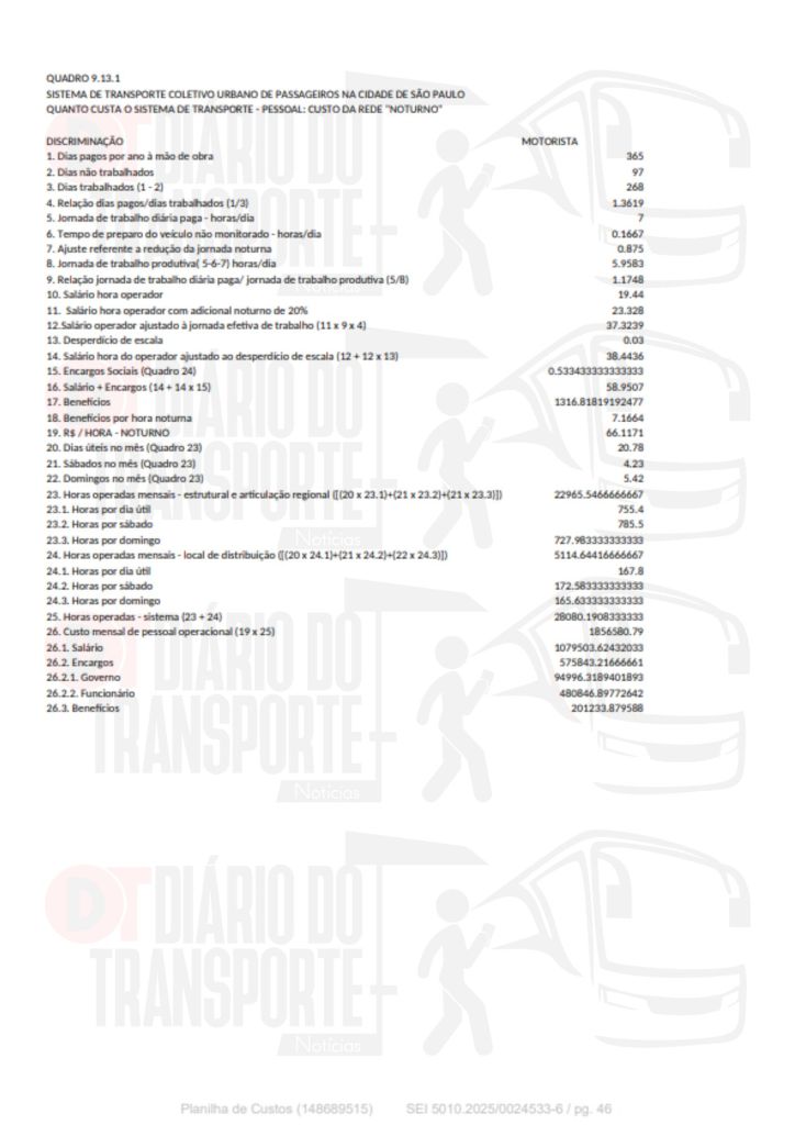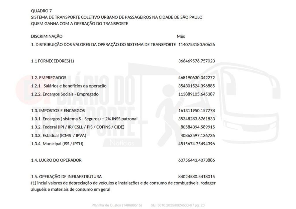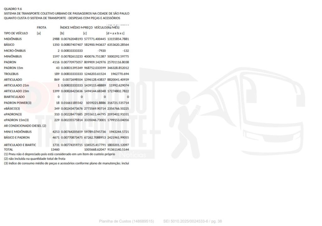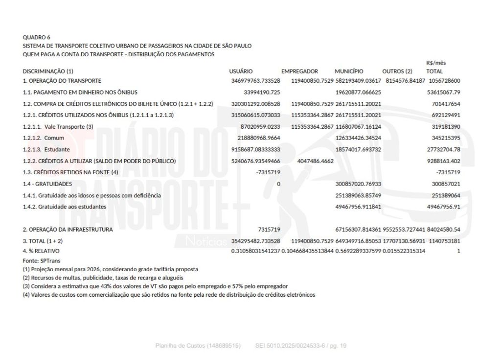 Os dados foram apresentados nesta sexta-feira, 02 de janeiro de 2026, ao CMTT – Conselho Municipal de Transporte e Trânsito, na qual a SPTrans (São Paulo Transporte), gerenciadora do sistema de ônibus da capital paulista explicou os custos de operação e manutenção e as justificativas para o aumento da tarifa, que passa de R$ 5 para 5,30 em 06 de janeiro de 2026.