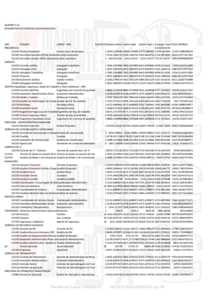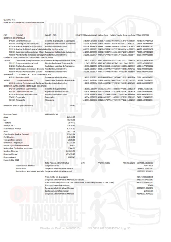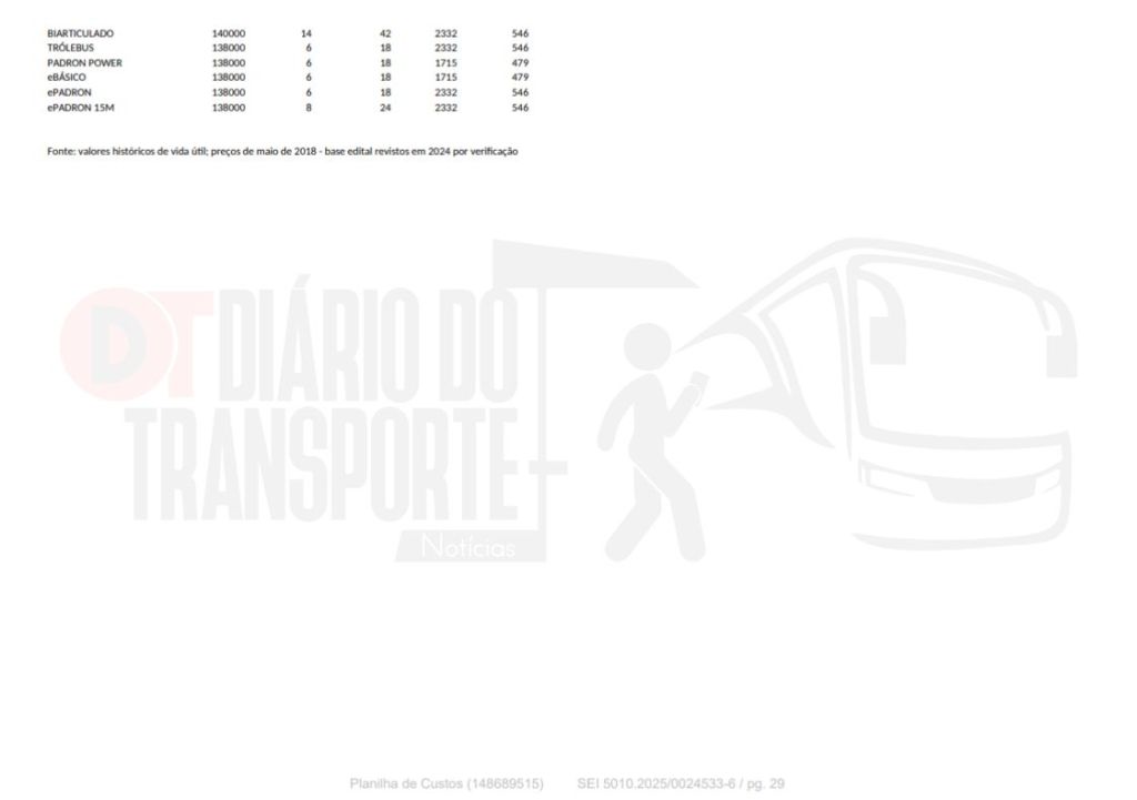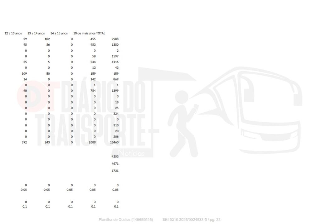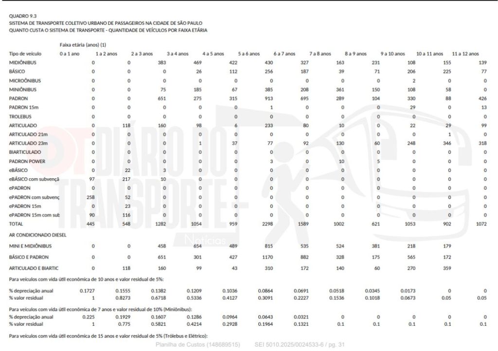 VEJA A TABELA OFICIAL DA SPTRANS, A QUAL O DIÁRIO DO TRANSPORTE TEVE ACESSO:
