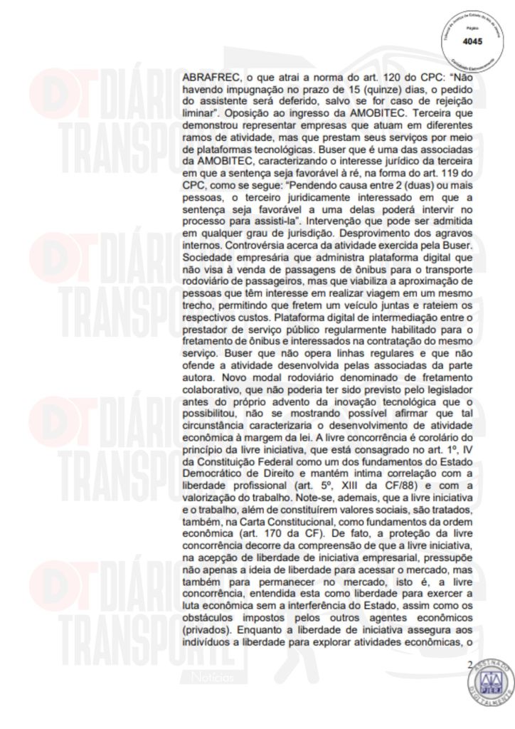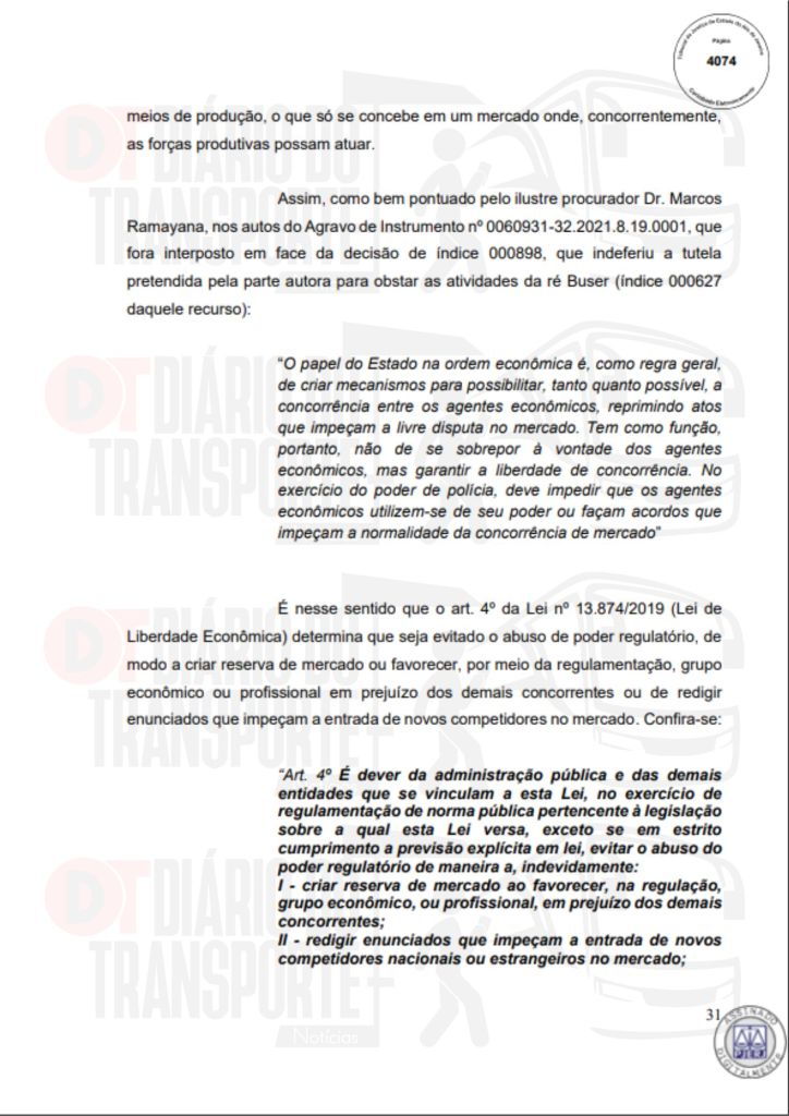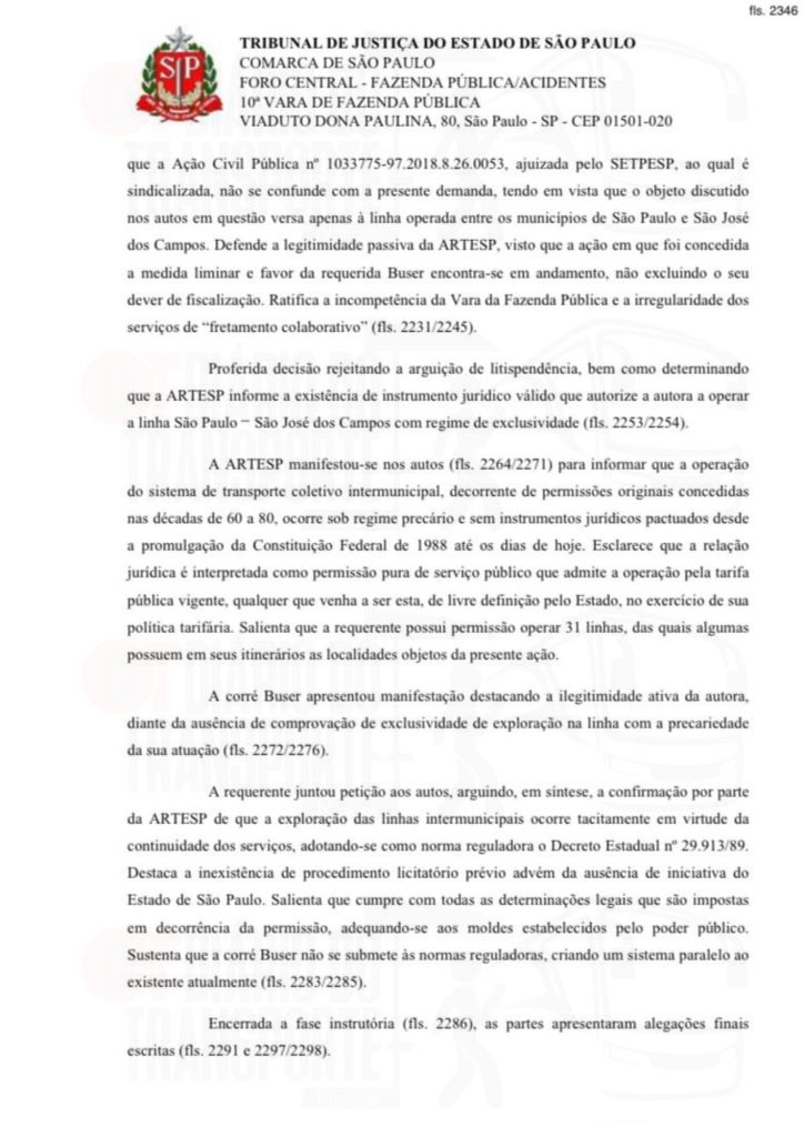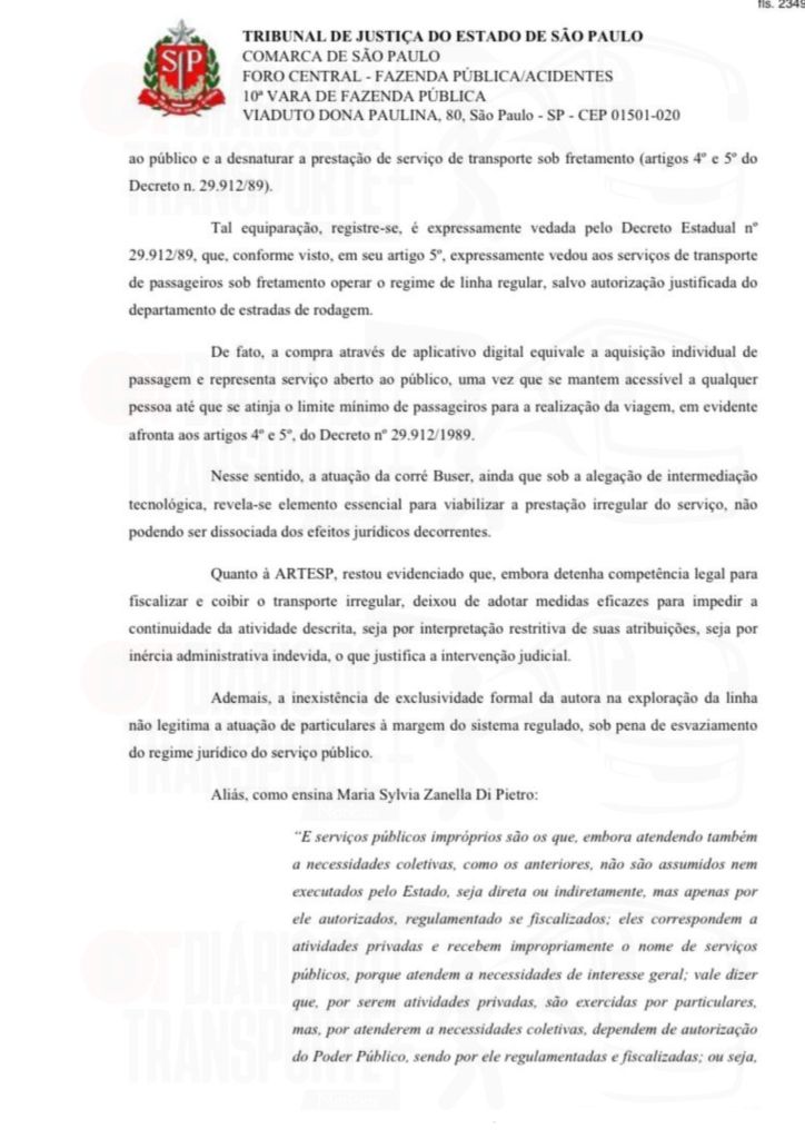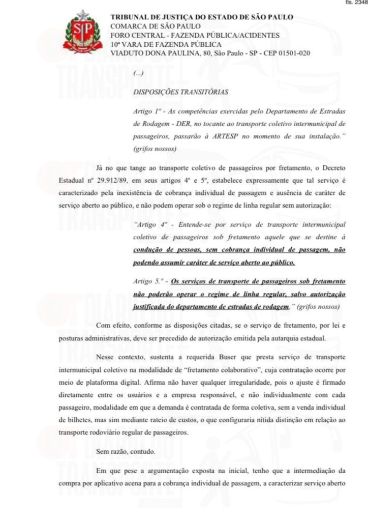 Ainda de acordo com o despacho da juíza, o fato de a Artesp ainda não ter licitado as linhas regulares, que operam com contratos provisórios não pode ser pretexto para que, de forma irregular e sem autorização, alguém possa prestar esta ligação.