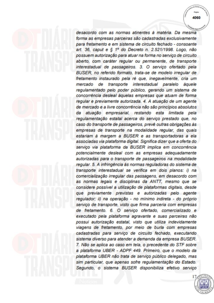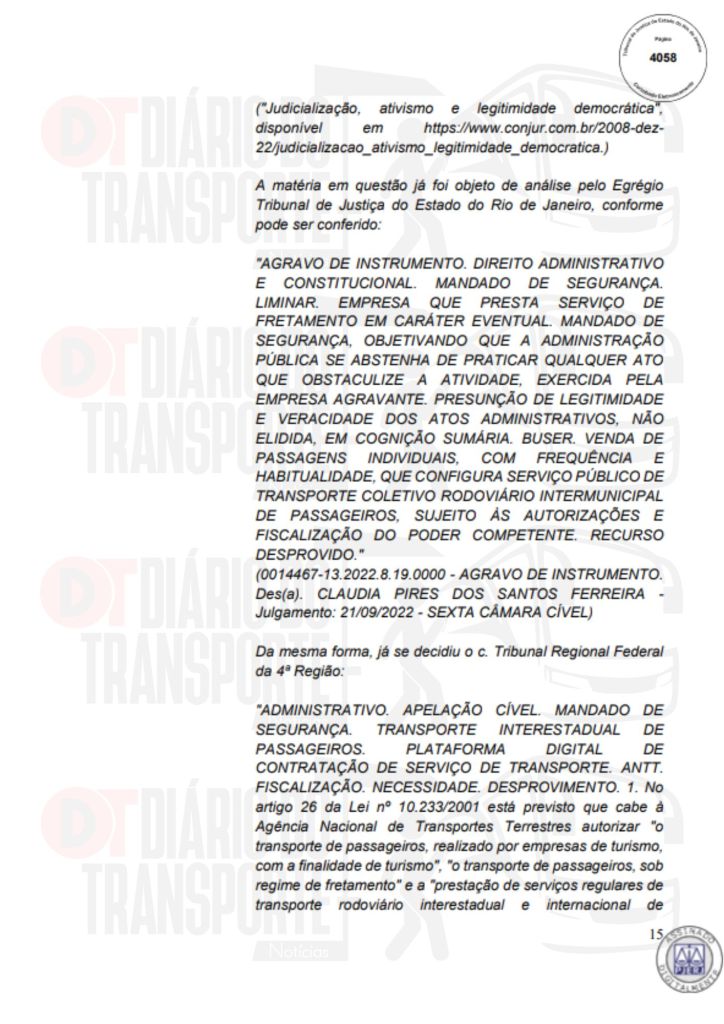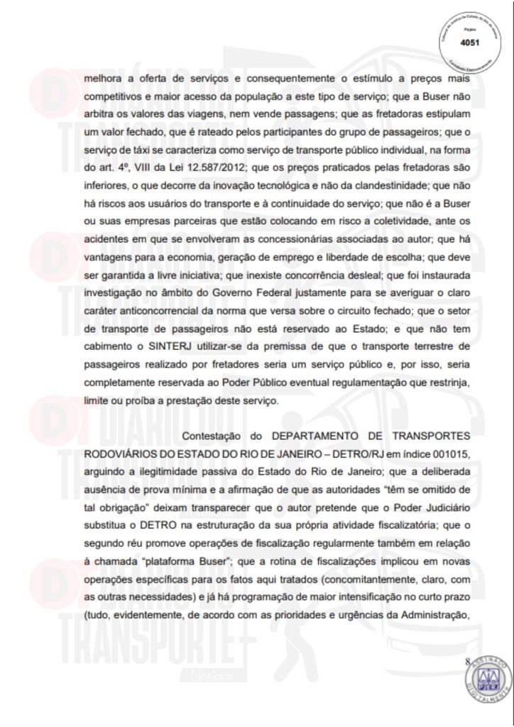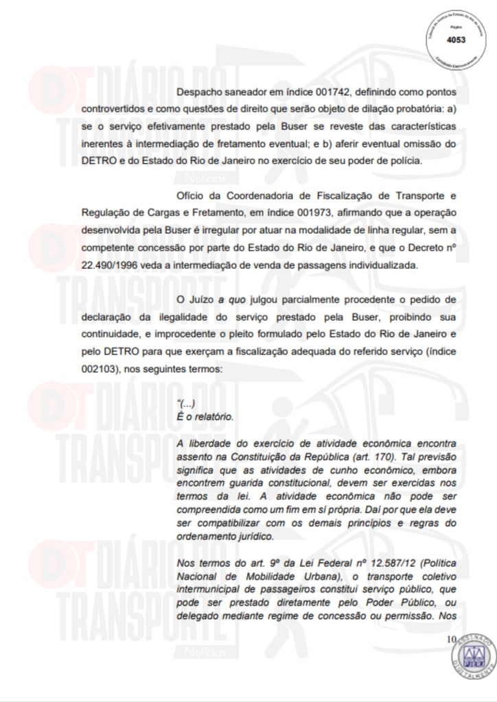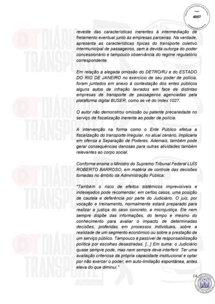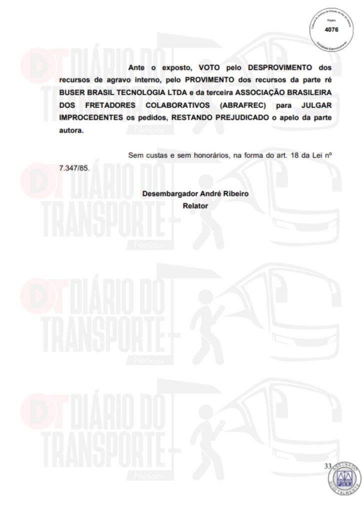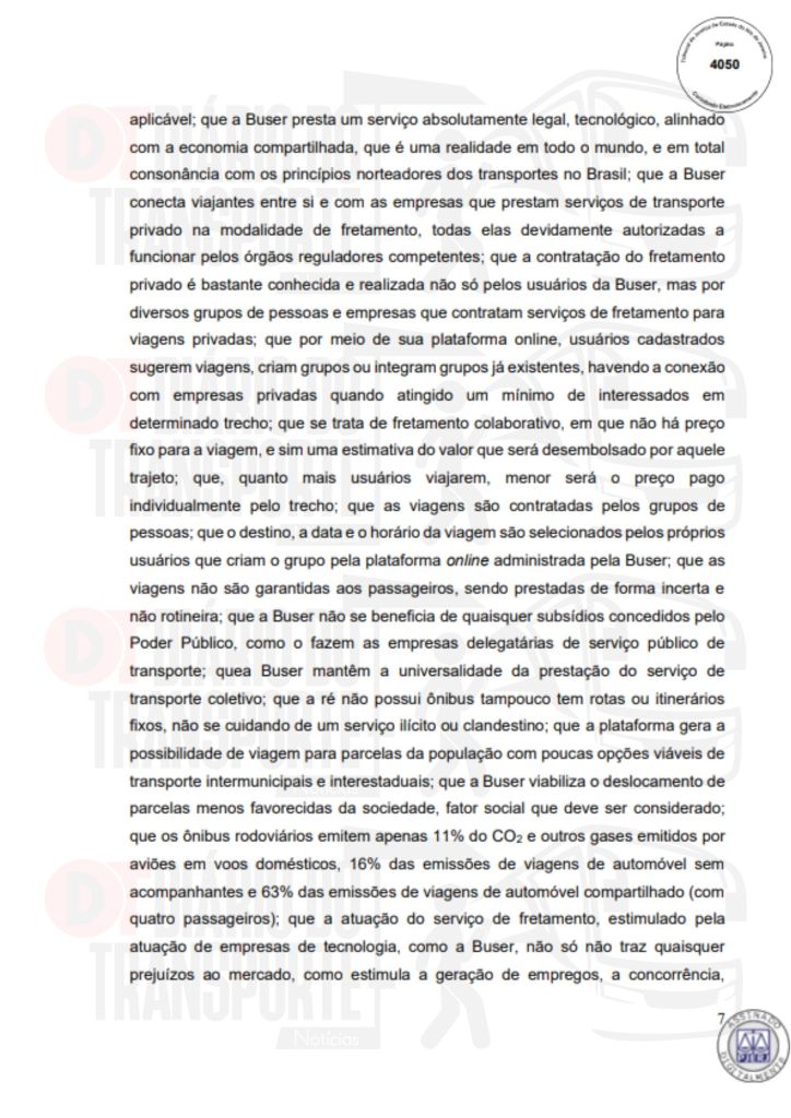 No Rio de Janeiro, acórdão da Sexta Câmara de Direito Público, também de 14 de abril de 2026, divulgado nesta quinta-feira (16), negou pedido do Sinterj (Sindicato das Empresas de Transportes Rodoviários do Estado do Rio de Janeiro) que alegaram que a Buser vem disponibilizando  ofertas de viagens a serem realizadas por empresas que não possuem autorização do Poder Público para operar nos trechos indicados e que pretendem competir com as viações de linhas regulares.