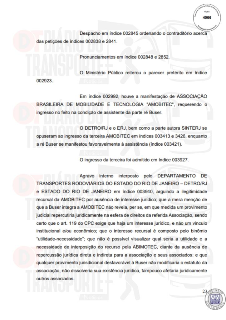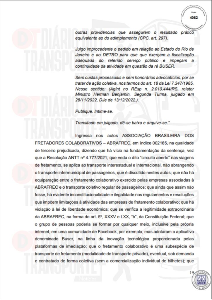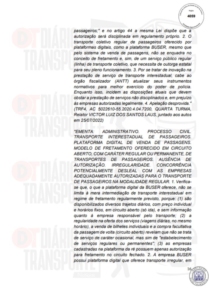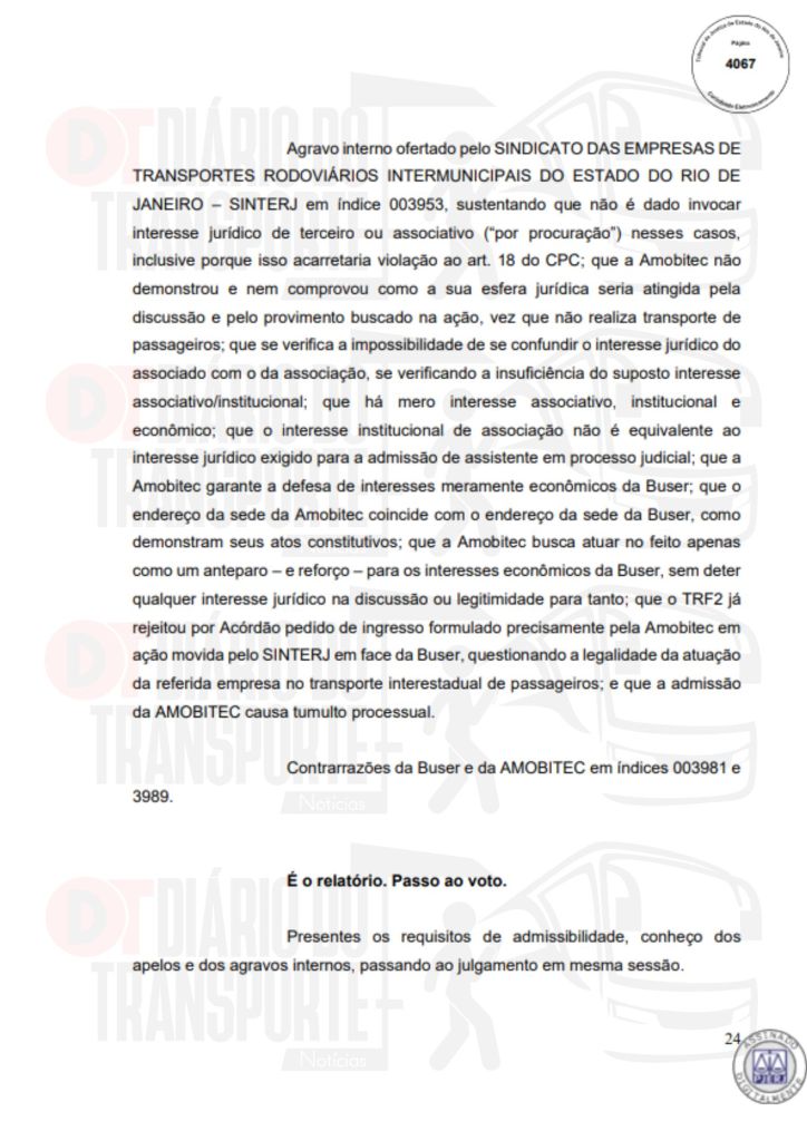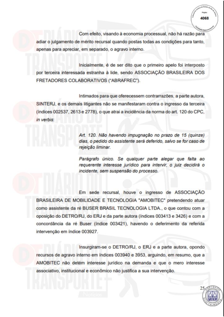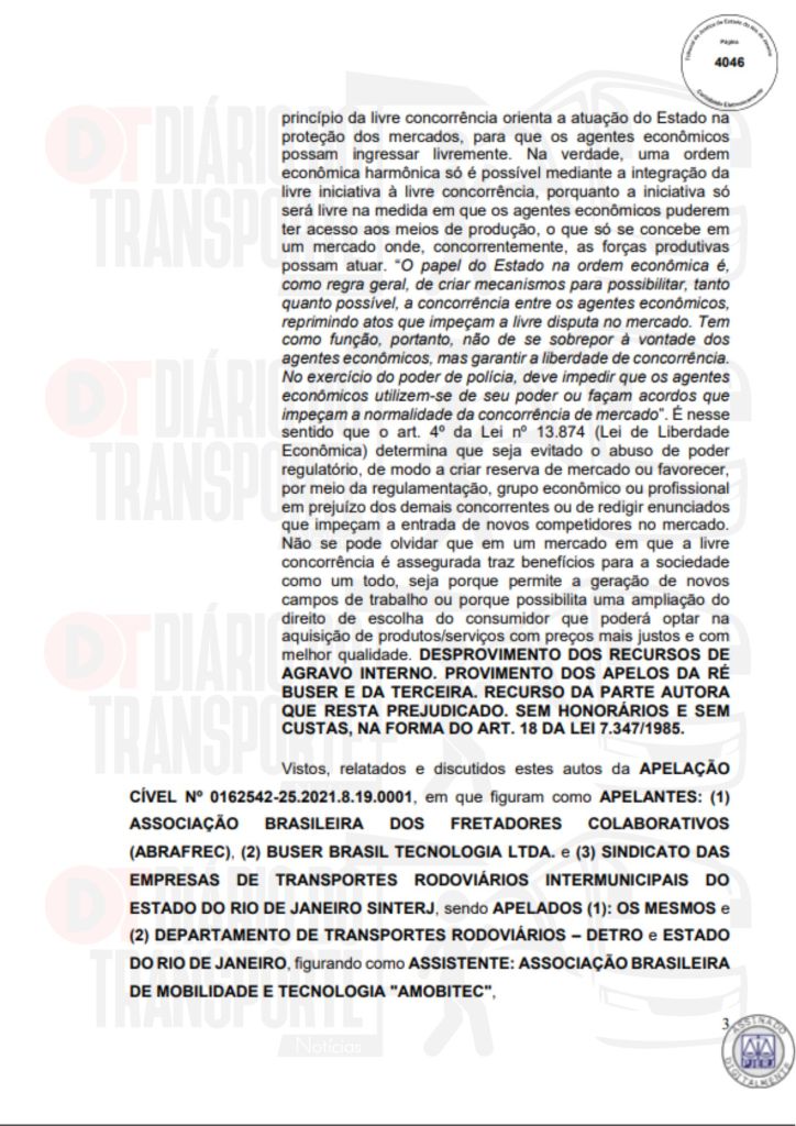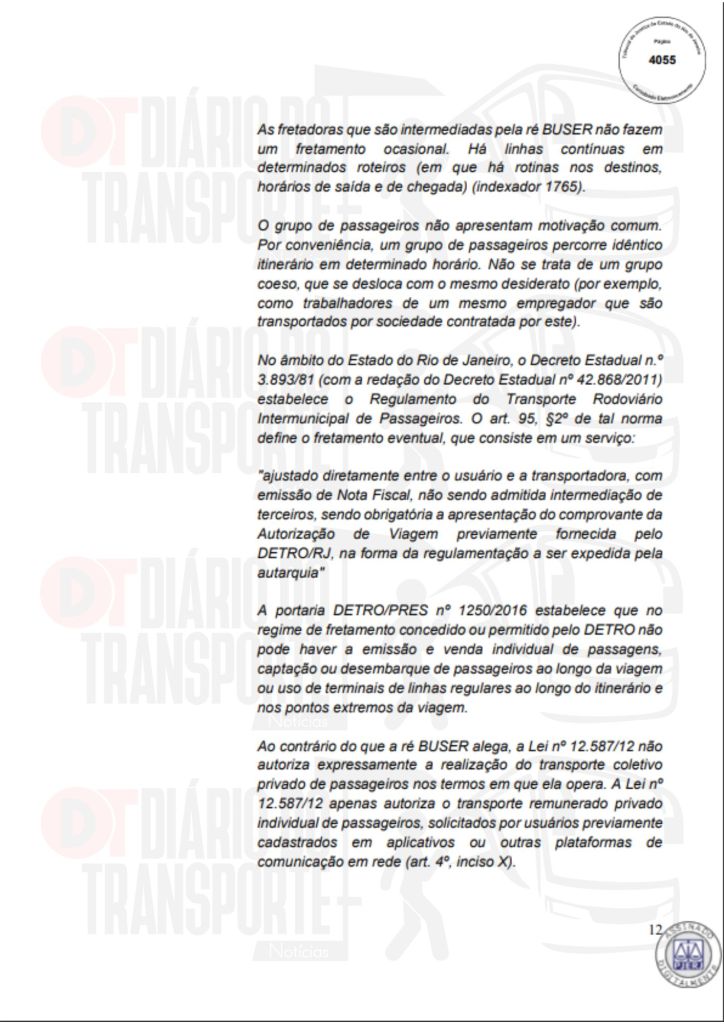 No Rio de Janeiro, acórdão da Sexta Câmara de Direito Público, também de 14 de abril de 2026, divulgado nesta quinta-feira (16), negou pedido do Sinterj (Sindicato das Empresas de Transportes Rodoviários do Estado do Rio de Janeiro) que alegaram que a Buser vem disponibilizando  ofertas de viagens a serem realizadas por empresas que não possuem autorização do Poder Público para operar nos trechos indicados e que pretendem competir com as viações de linhas regulares.