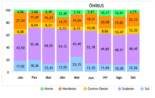 No acumulado de janeiro a setembro de 2025, foram emplacados 21.238 ônibus, crescimento de 8,19% sobre igual período de 2024, quando o total foi de 19.630 unidades. Os números confirmam que, apesar das oscilações mensais, o setor mantém trajetória positiva em 2025.