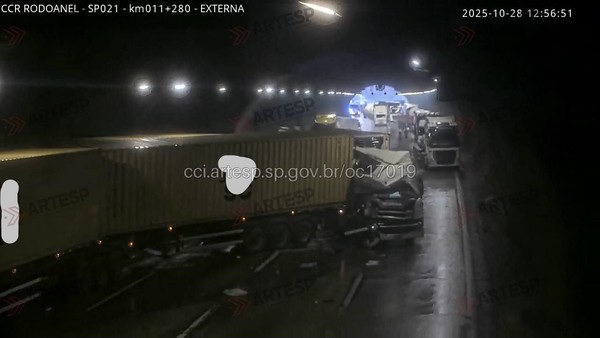 Nesta terça-feira, 28 de outubro de 2025, por volta das 12h30, um engavetamento envolvendo três caminhões, três carros e uma carreta que transportava ácido sulfúrico interditou os túneis 1 e 2 do Rodoanel Mário Covas, em Barueri (SP).