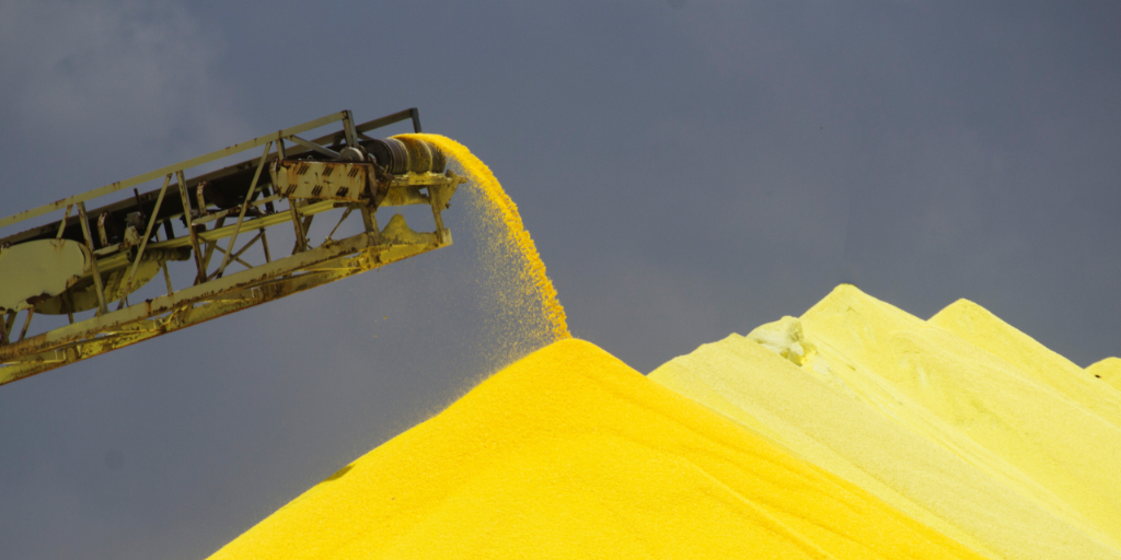 Esse movimento de valorização afeta a cadeia de fertilizantes. Embora o enxofre não entre diretamente na formulação do DAP (fosfato diamônico), é uma matéria-prima essencial na cadeia de produção de determinados fertilizantes fosfatados.