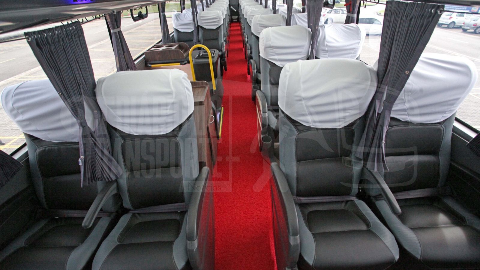 Um dos diferenciais, segundo a empresa, é que por meio de um projeto especial da fabricante de carrocerias Comil, de Erechim (RS), foi possível uma configuração que ampliou a capacidade dos bagageiros.