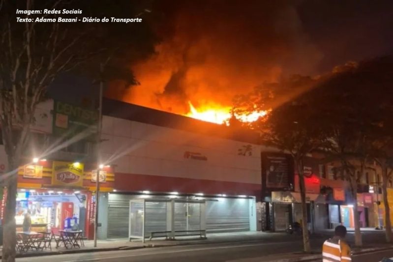Como mostrou o Diário do Transporte, o estabelecimento comercial teve o terceiro andar tomado pelo incêndio na noite desta segunda-feira (17). O teto desabou.