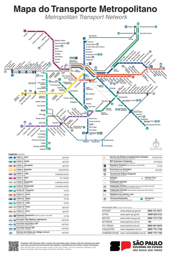 O Governo de São Paulo disponibilizou para download o mapa atualizado do transporte metroferroviário metropolitano com a inclusão da Linha 17-Ouro. O material pode ser acessado no site da Agência SP e reflete a inauguração do novo ramal ocorrida na terça-feira (31).