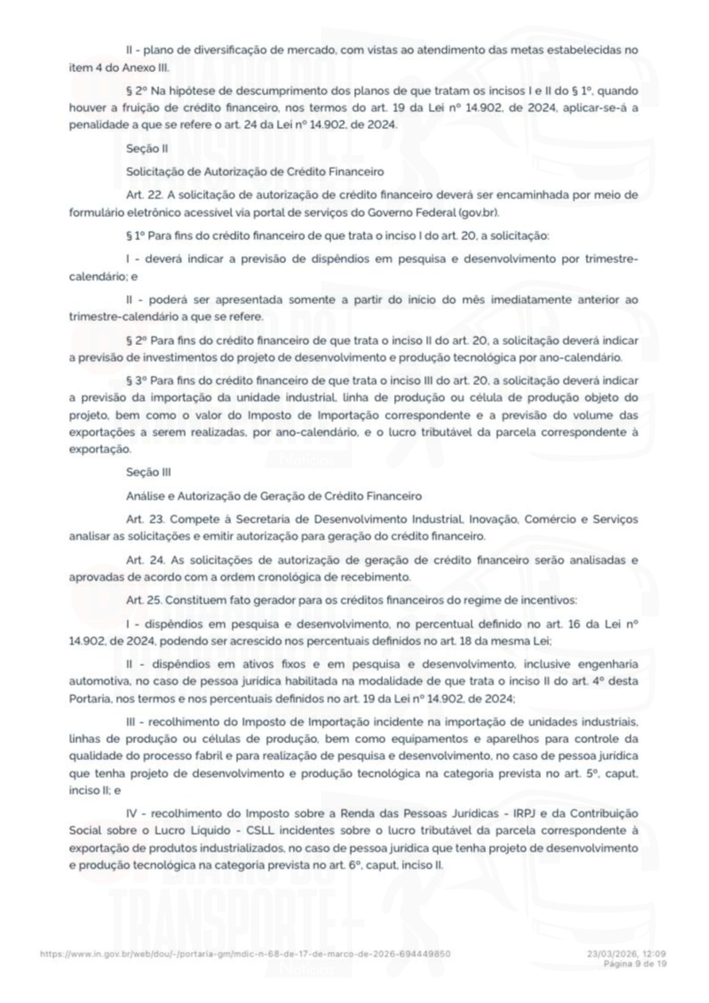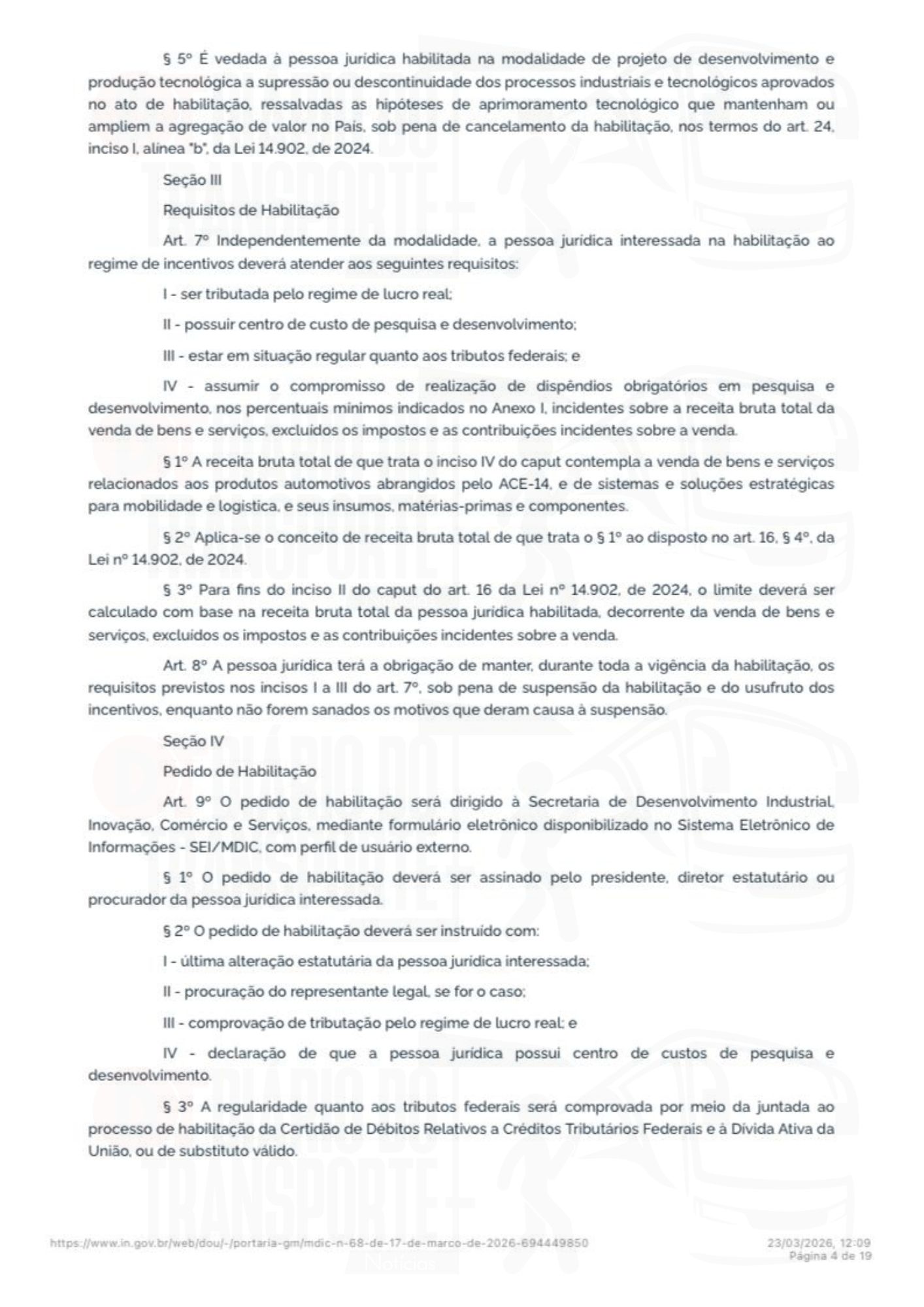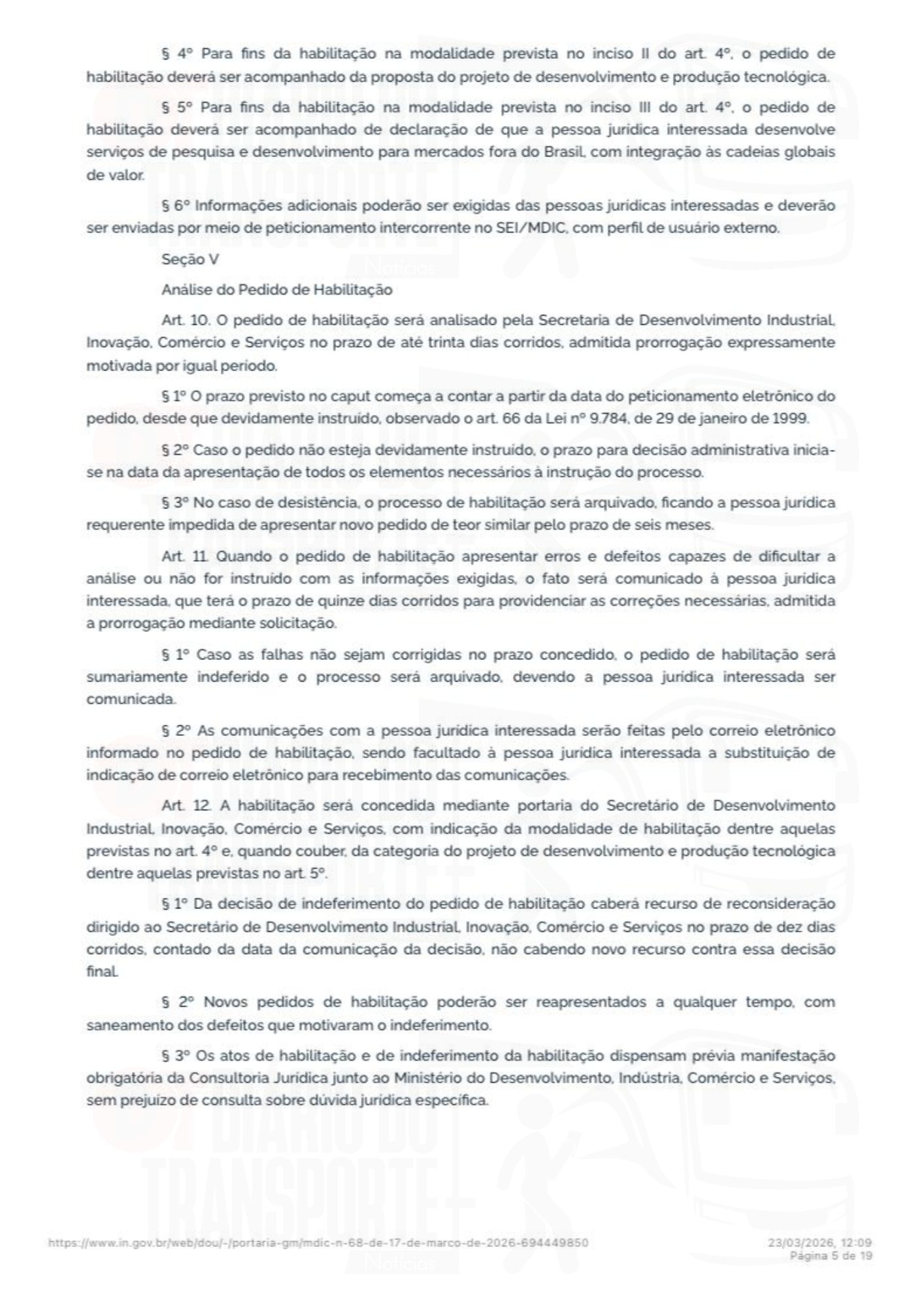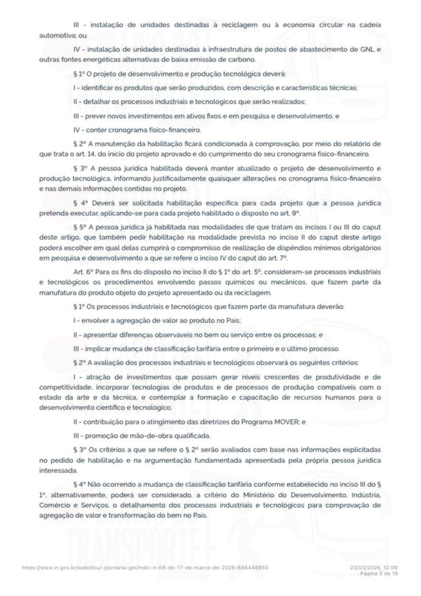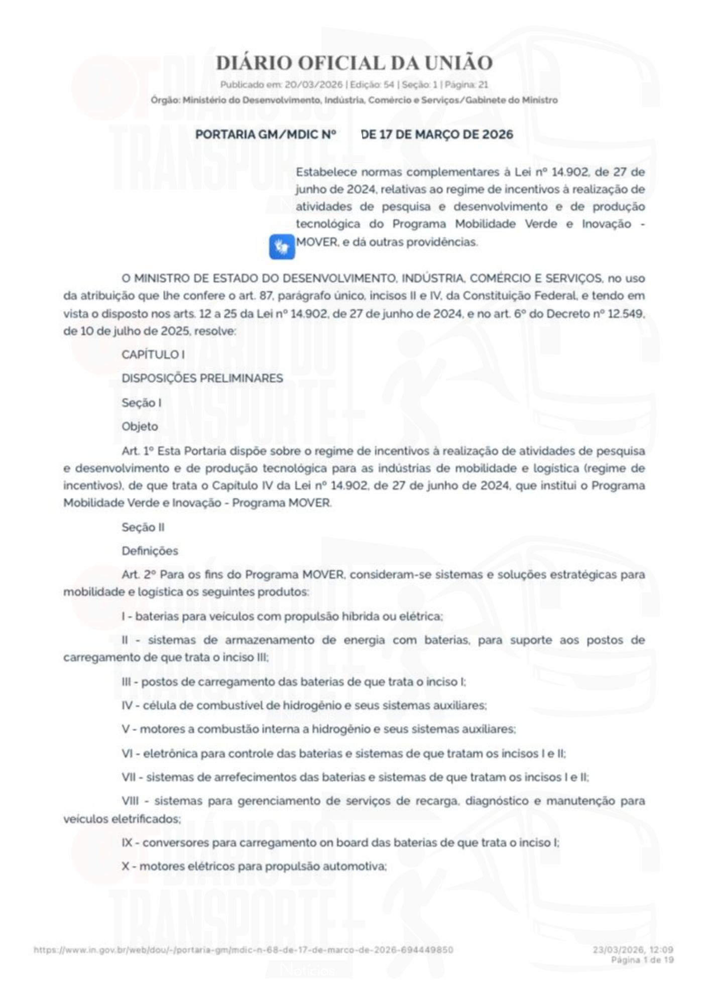 A portaria número 68 do Ministério do Desenvolvimento, Indústria, Comércio e Serviços foi publicada no Diário Oficial da União, da última sexta-feira, 20 de março de 2026.