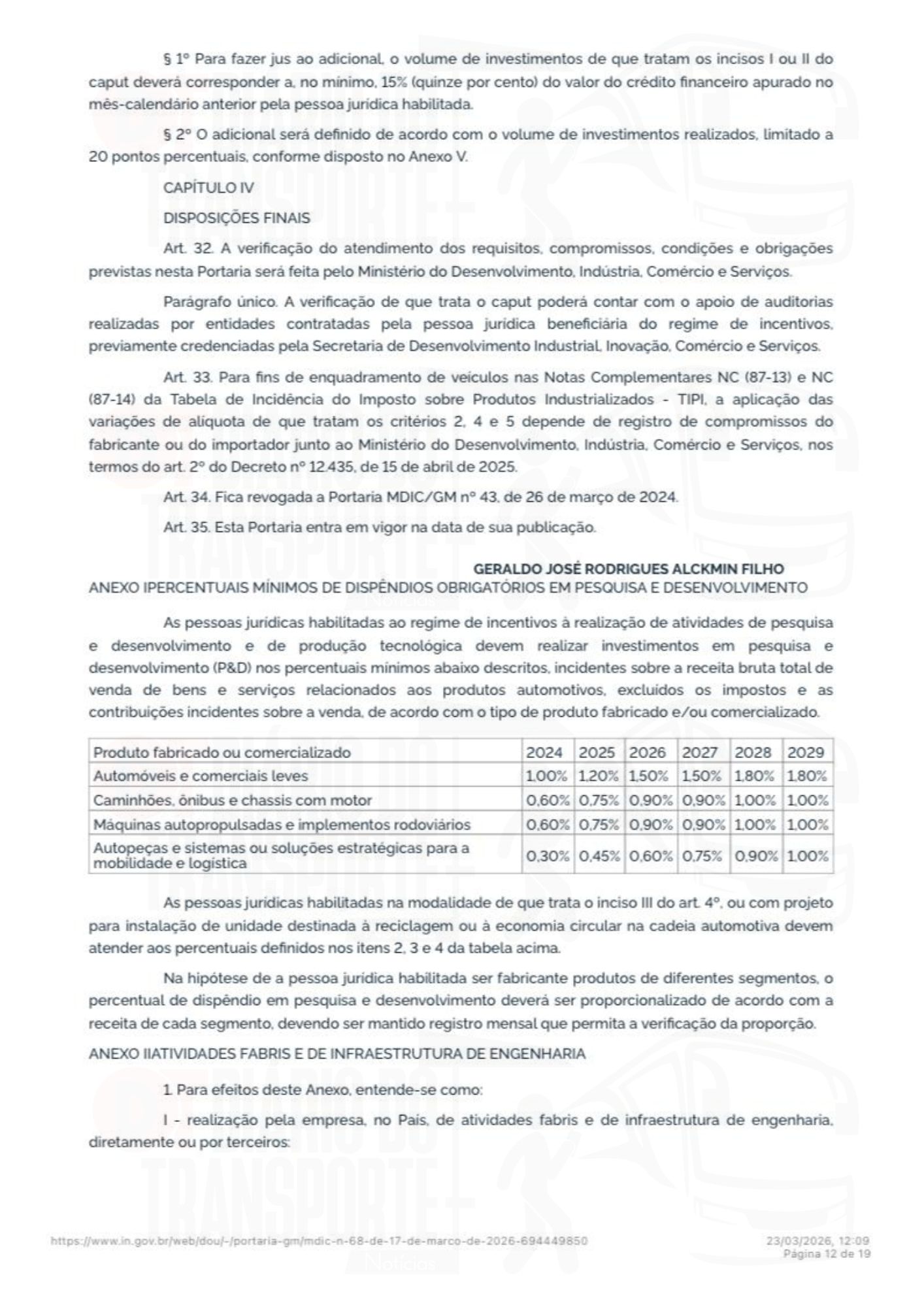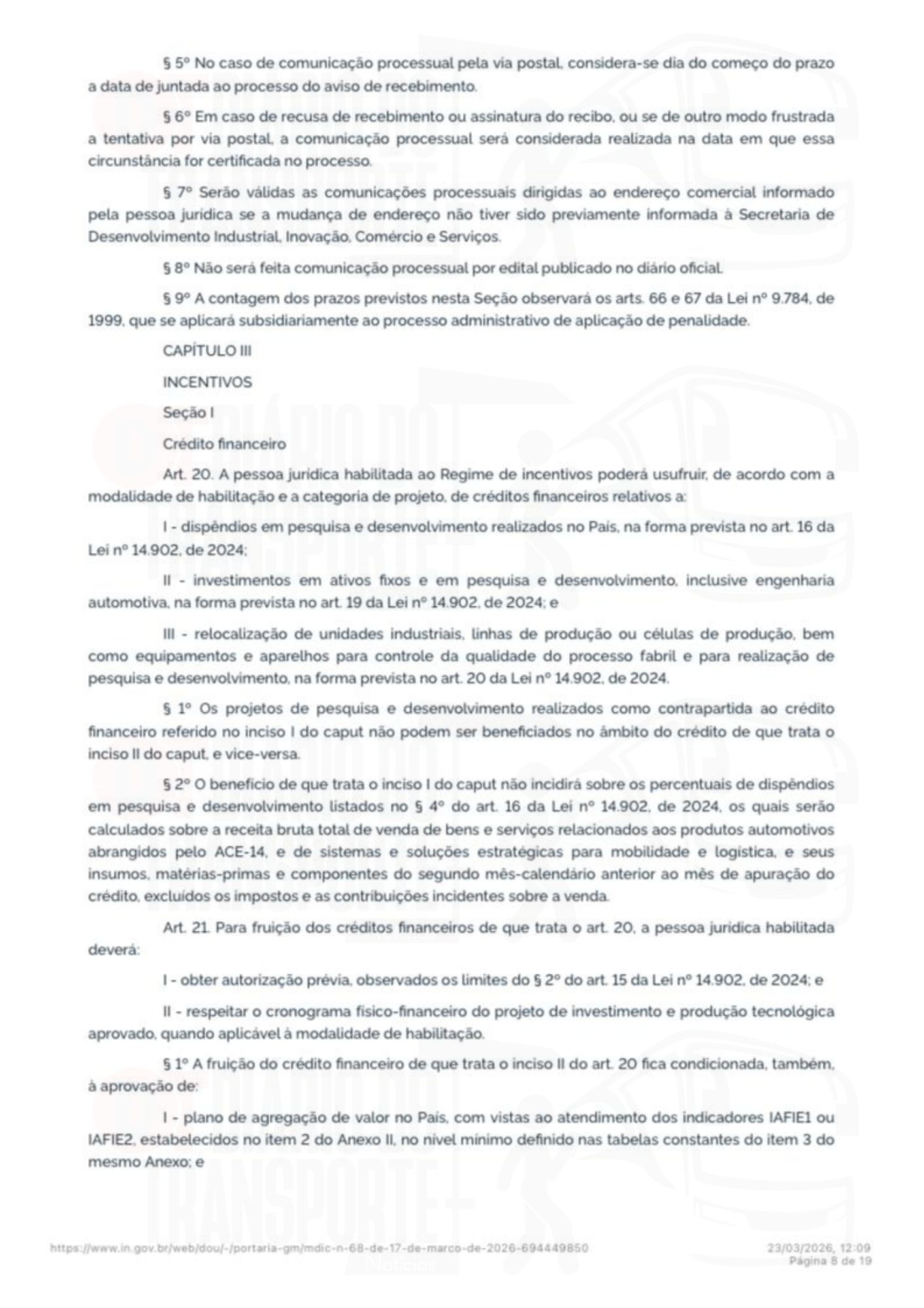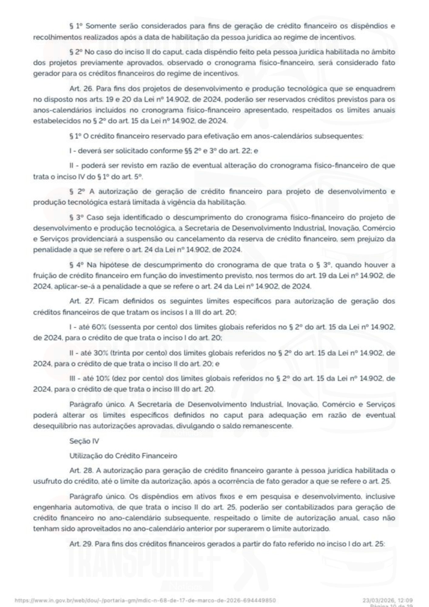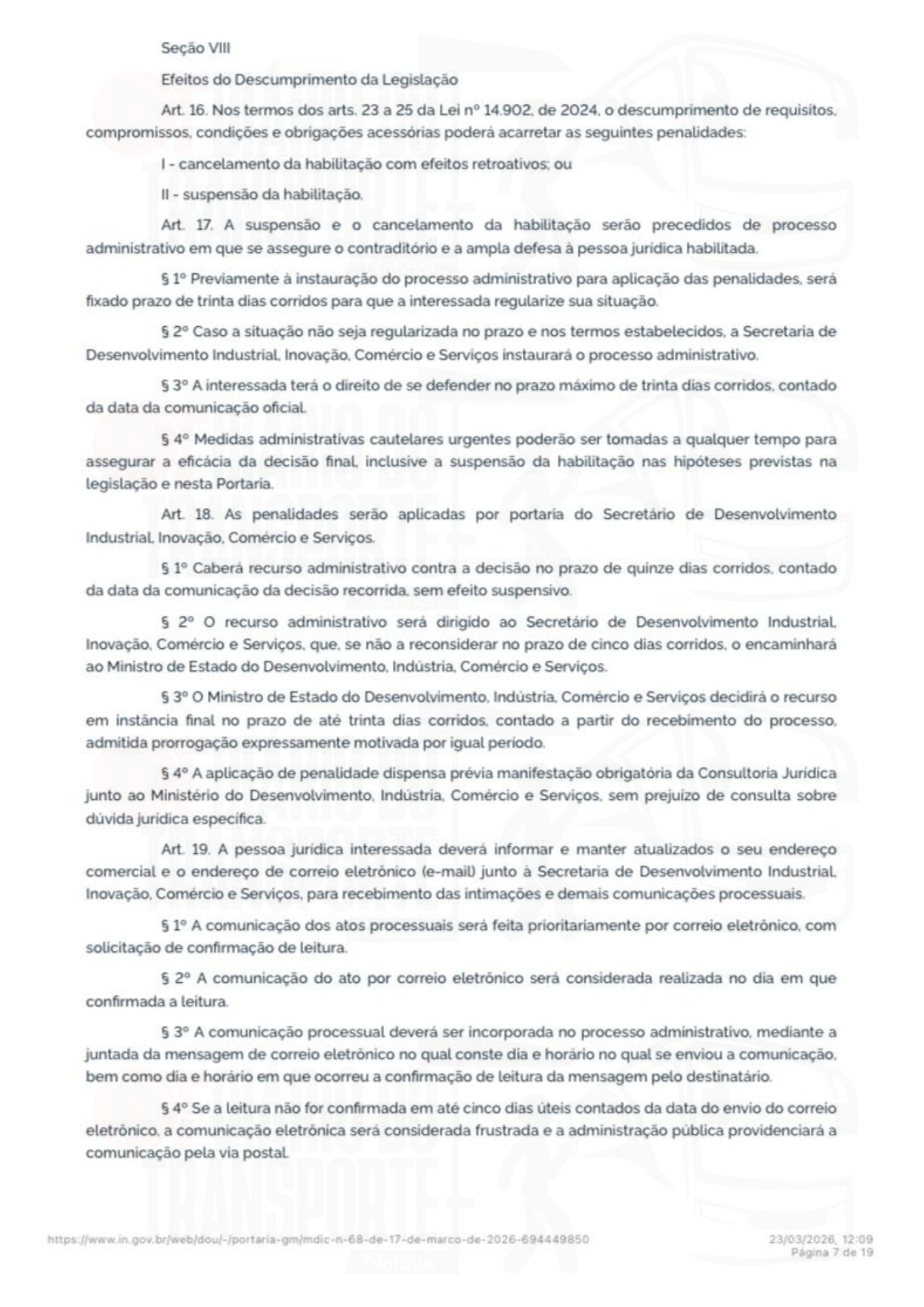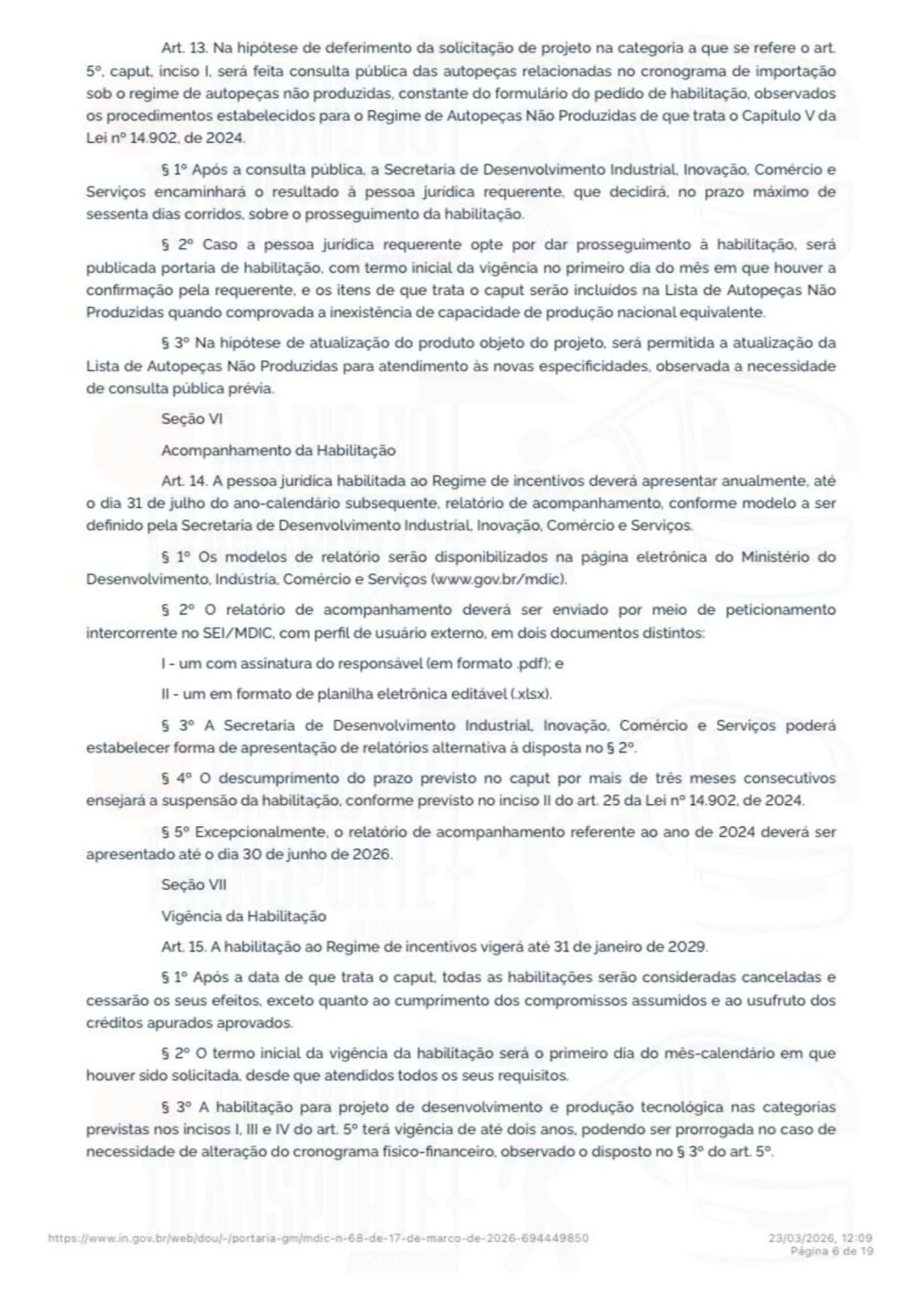 A portaria número 68 do Ministério do Desenvolvimento, Indústria, Comércio e Serviços foi publicada no Diário Oficial da União, da última sexta-feira, 20 de março de 2026.