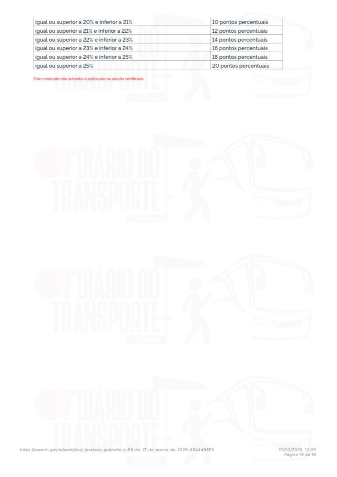 O Diário do Transporte noticiou nesta segunda-feira, 23 de março de 2026, que preço do óleo diesel S-10 comum, usado pela frota de ônibus e caminhões pelo País, desde 1º de março de 2026, teve aumento acumulado de 19,71% para os consumidores finais, em média, em todo o Brasil.