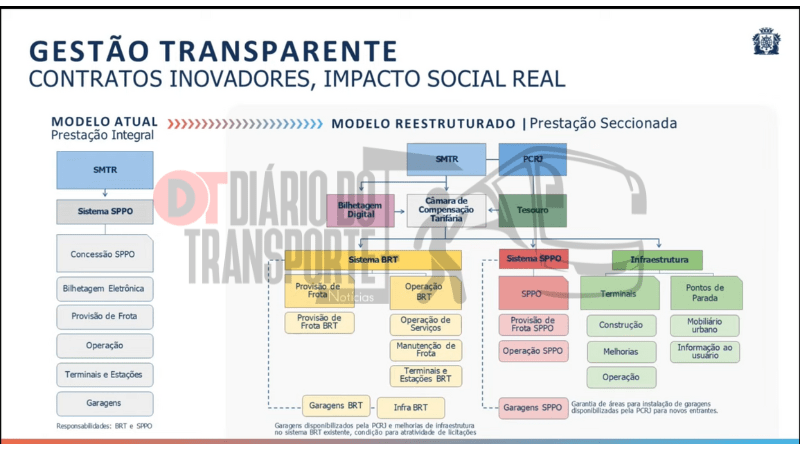 O projeto estabelece a substituição do atual sistema, hoje operado por quatro grandes consórcios (Intersul, Internorte, Transcarioca e Santa Cruz), por 31 áreas com diferentes operadores, em um modelo que pretende aumentar a concorrência, padronizar o serviço e melhorar o atendimento à população.