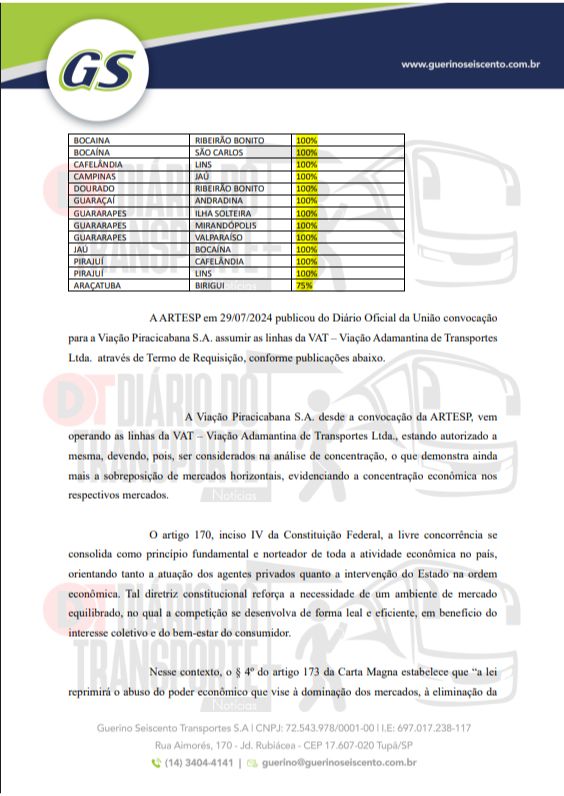PEDIDO DA VIAÇÃO PIRACICABANA OBTIDO PELO DIÁRIO DO TRANSPORTE EM 28 DE JANEIRO DE 2026: