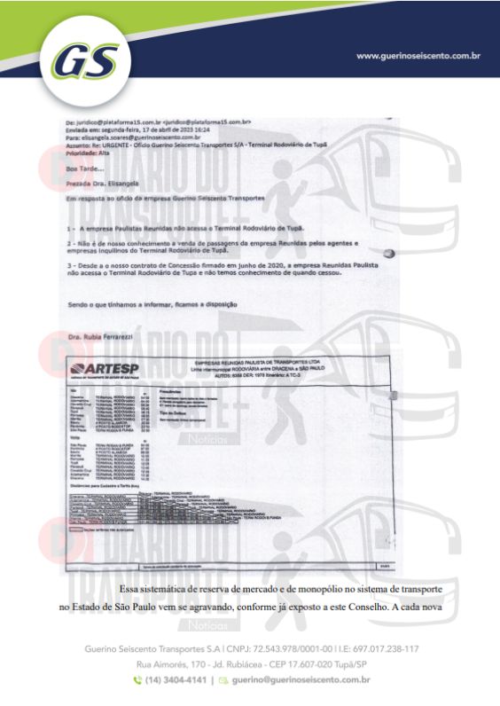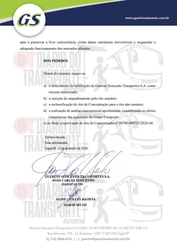 PEDIDO DA GUERINO SESICENTO OBTIDO PELO DIÁRIO DO TRANSPORTE EM 12 DE FEVEREIRO DE 2026: