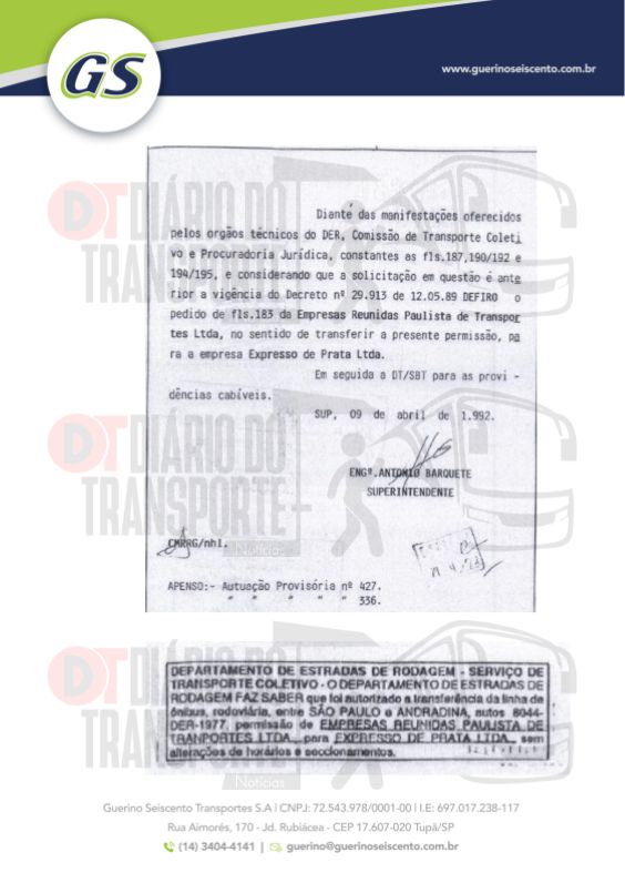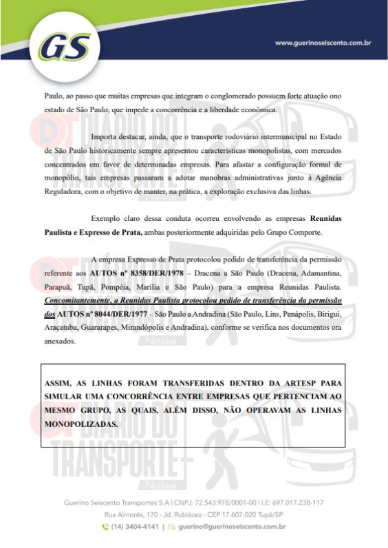 No pedido, a Guerino Seiscento diz que a operação da Piracicabana nas linhas que eram de responsabilidade da Reunidas Paulista vai prejudicar a concorrência nos transportes rodoviários