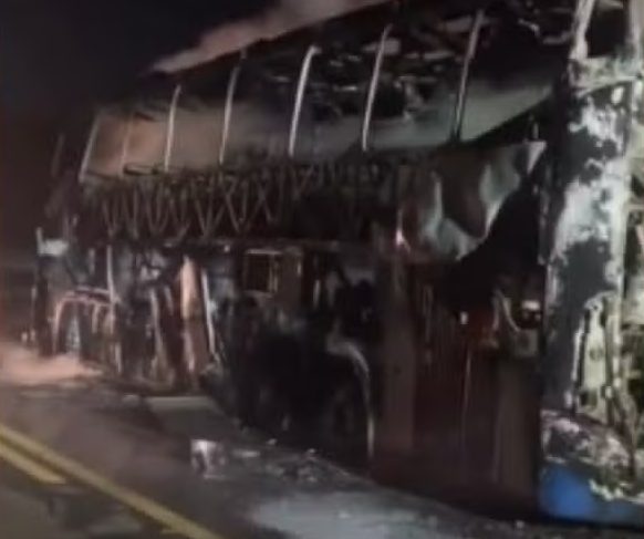Na madrugada deste sábado, 03 de janeiro de 2026, um ônibus rodoviário pegou fogo e foi destruído na rodovia MT-358, em Tangará da Serra (MT).