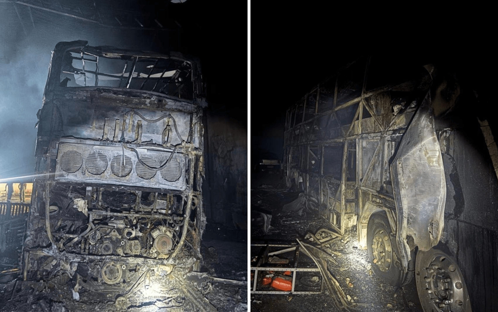 O Corpo de Bombeiros foi acionado e conteve as chamas. No local, encontravam-se um ônibus, uma carreta e um carro.