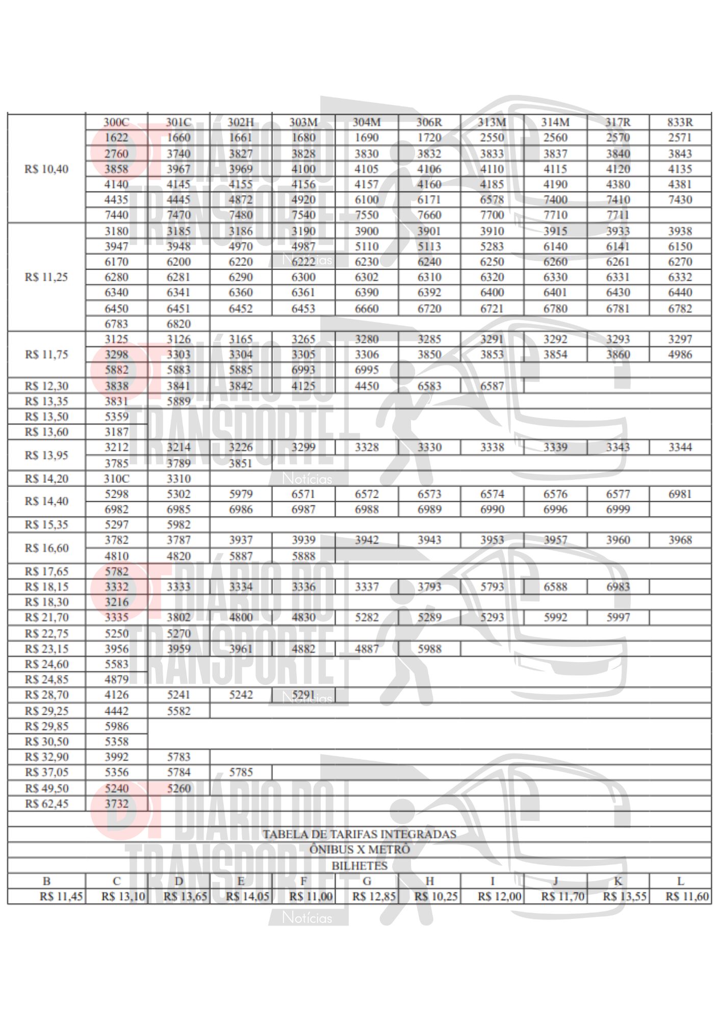 Os preços variam de acordo com as linhas e também ficaram mais caras as integrações entre o sistema de pneus e os trilhos, que, neste caso, de acordo com o trecho operado passam a ser de: R$ 11,45; R$ 13,10; R$ 13,65; R$ 14,05;R$ 11,00; R$ 12,85; R$ 10,25; R$ 12,00; R$ 11,70; R$ 13,55; e R$ 11,60