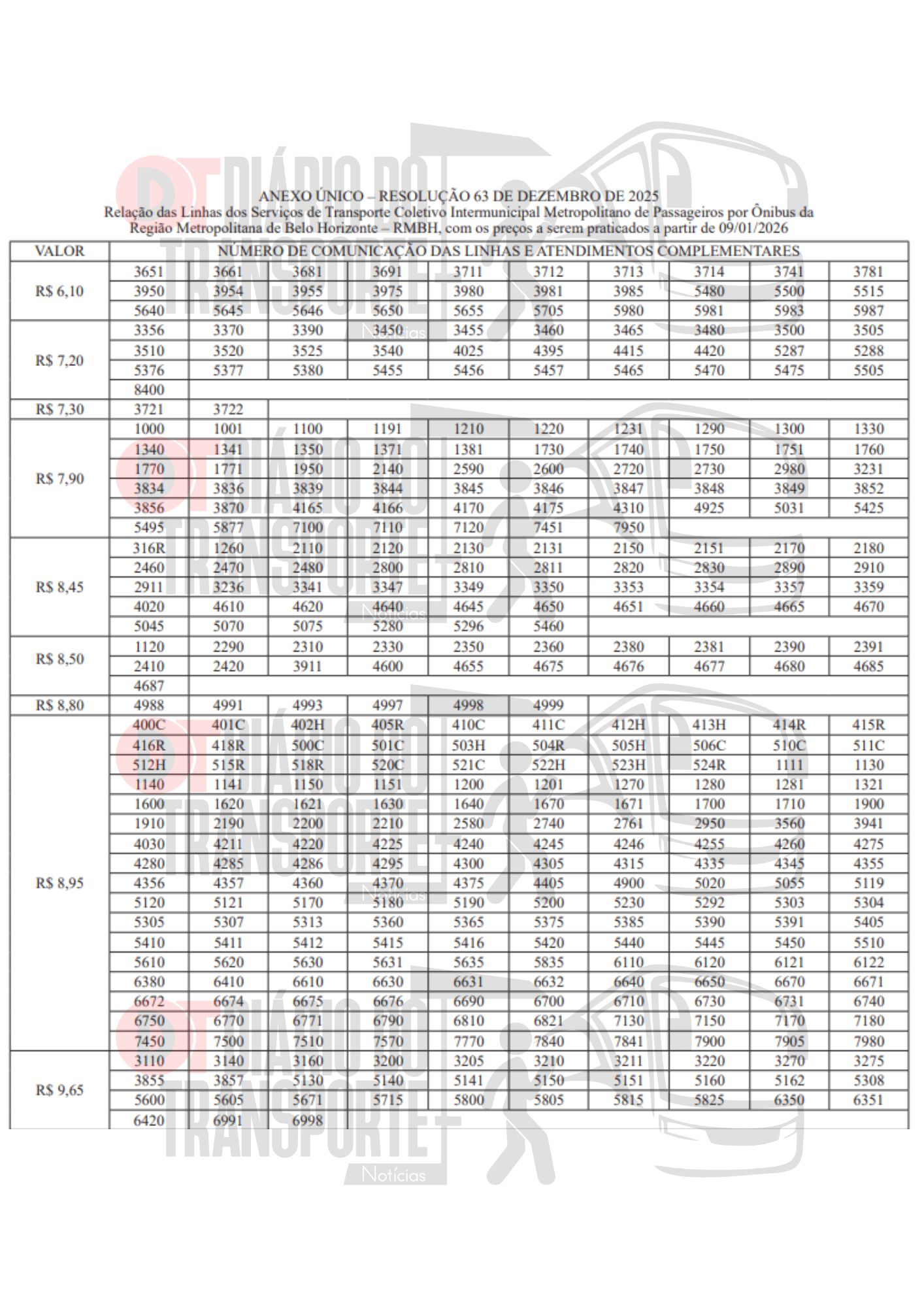 Já está mais caro andar de ônibus intermunicipais metropolitanos em Minas Gerais a partir desta sexta-feira, 09 de janeiro de 2026
