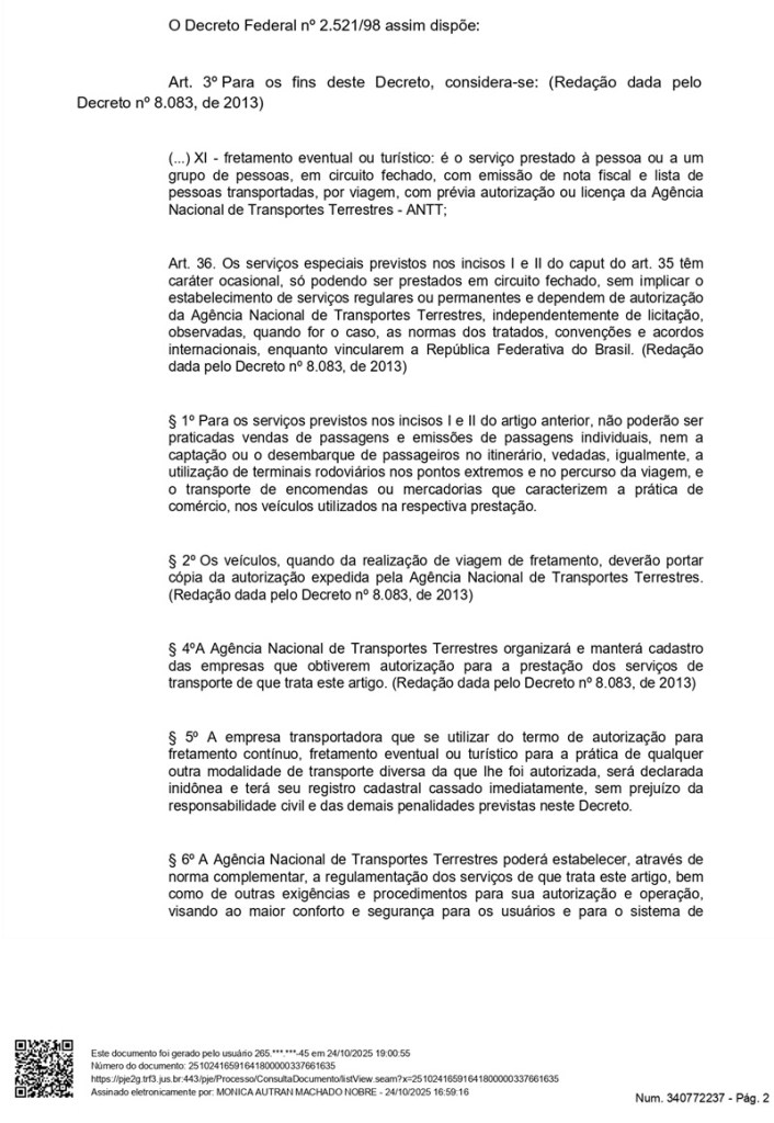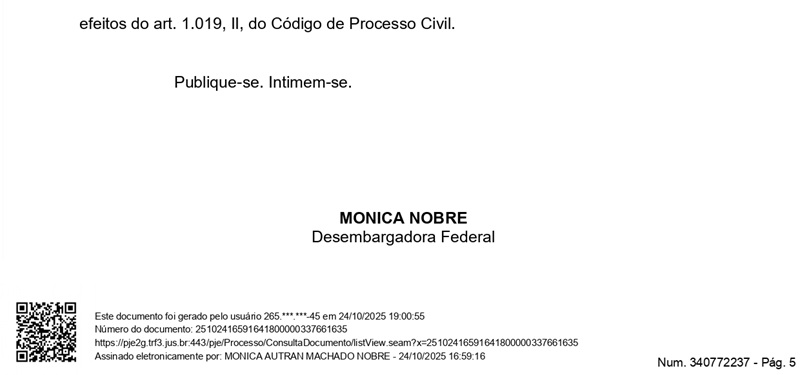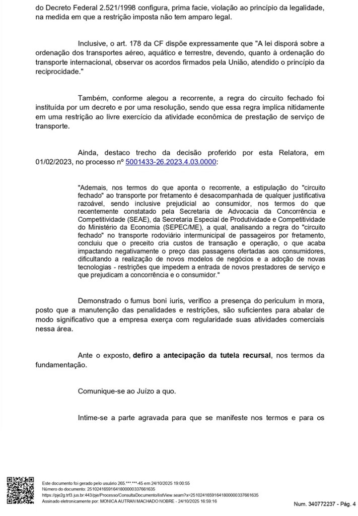 A decisão, assinada nesta sexta-feira, 24 de outubro de 2025 pela Desembargadora Federal Mônica Autran Machado Nobre, da 4ª Turma do TRF3, representa mais um precedente importante contra a exigência do chamado circuito fechado nas viagens de fretamento.