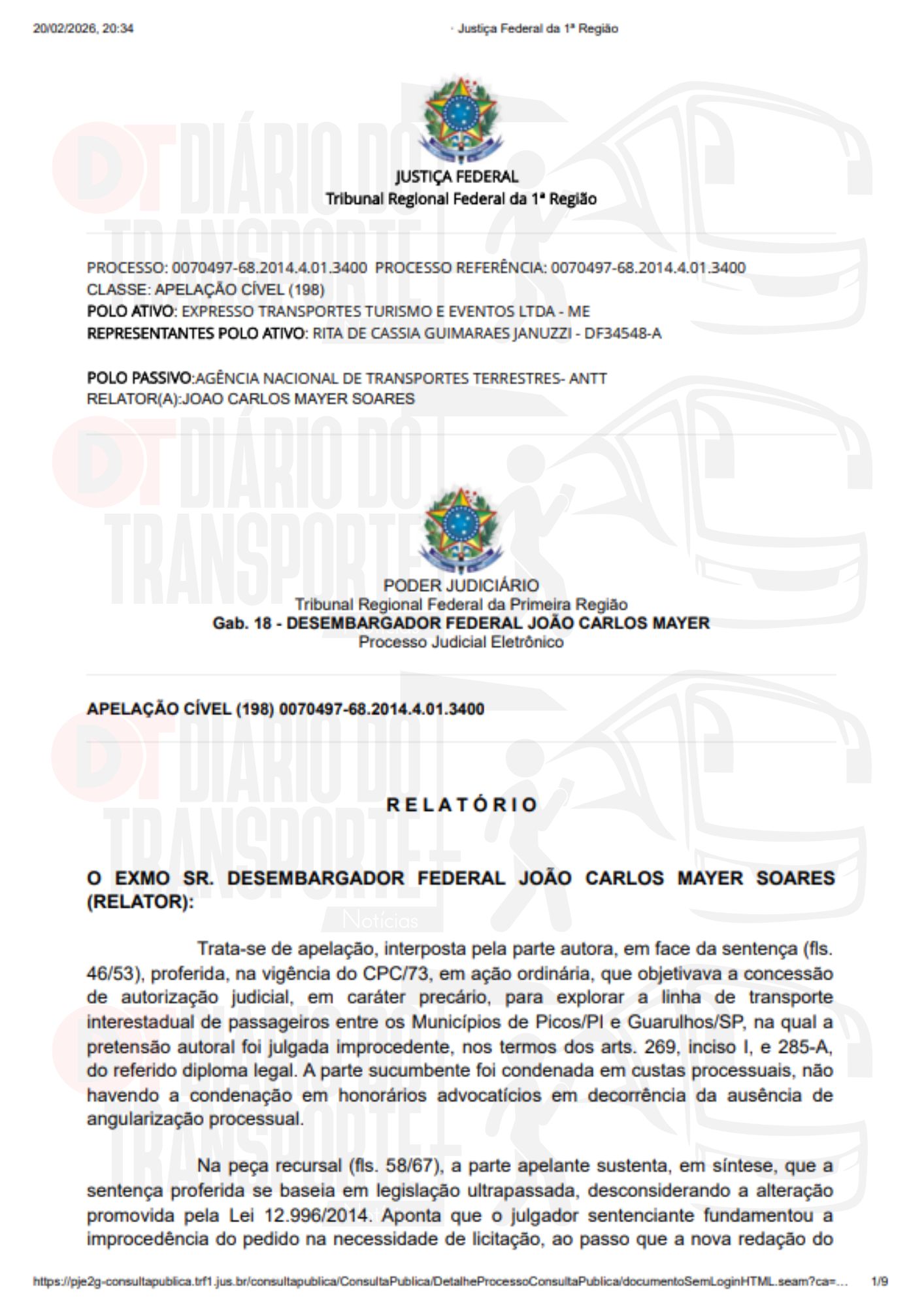 A Expresso Transportes e Turismo teve recurso negado pela 6ª Turma do Tribunal Regional Federal da 1ª Região (TRF1) e vai continuar sem poder operar a linha de ônibus rodoviários interestadual Picos (PI) x Guarulhos (SP).
