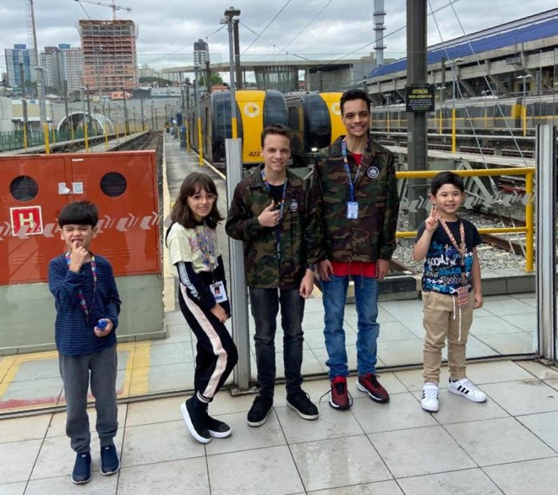 Grupo de pequenos entusiastas de trens participa de experiência educativa no Pátio Vila Sônia, com presença de influenciadores voltados à inclusão