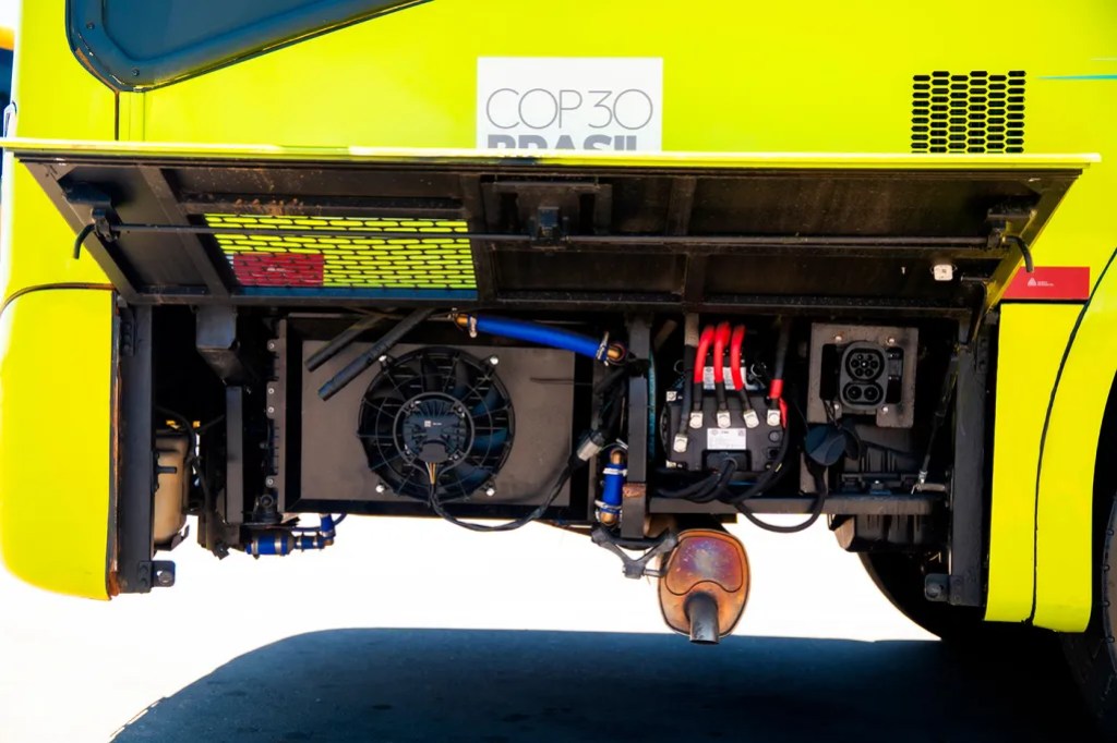 Durante a COP30, em Belém (PA), a Marcopolo, multinacional brasileira em soluções de mobilidade, apresentou um protótipo de ônibus urbano híbrido elétrico/etanol na Casa C.A.S.E., que é uma iniciativa articulada por Bradesco, Itaúsa, Itaú, Natura, Nestlé e Vale.